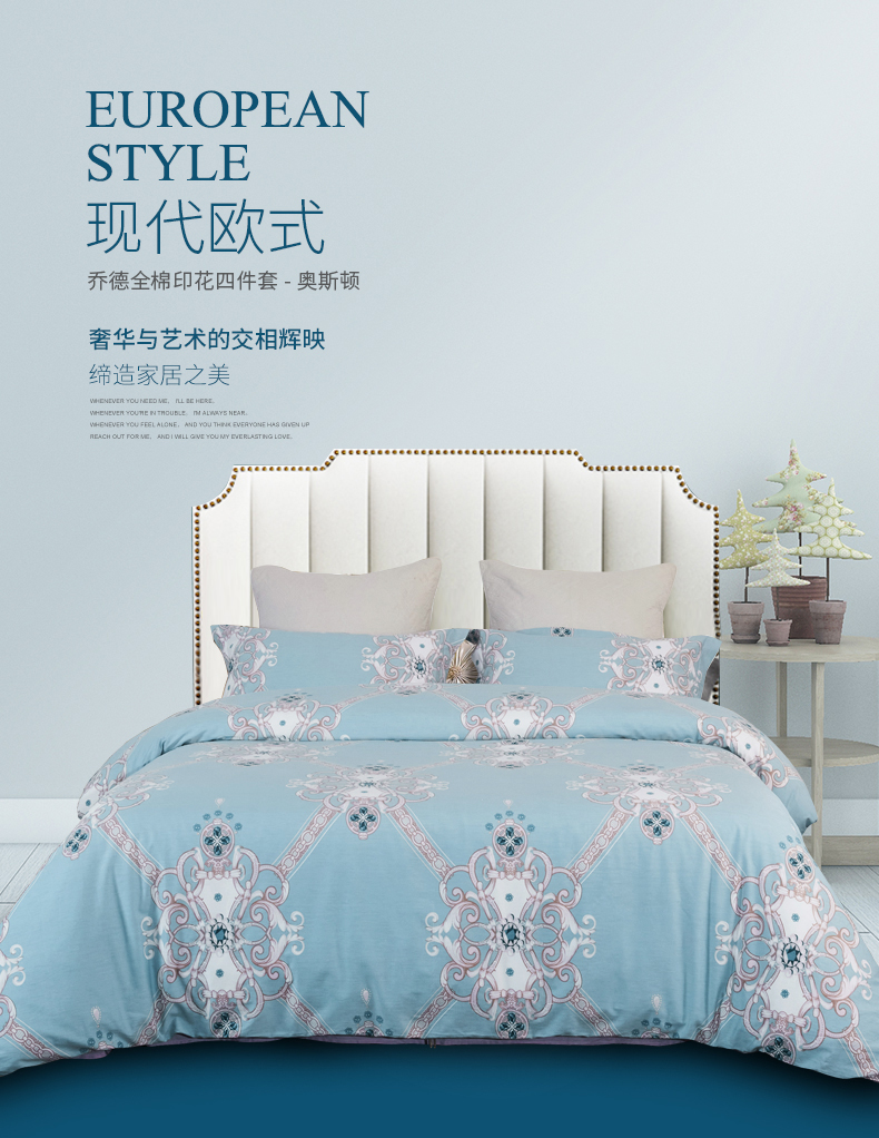 JOES HOME/乔德家纺全棉印花床品四件套-奥斯顿200*230cm