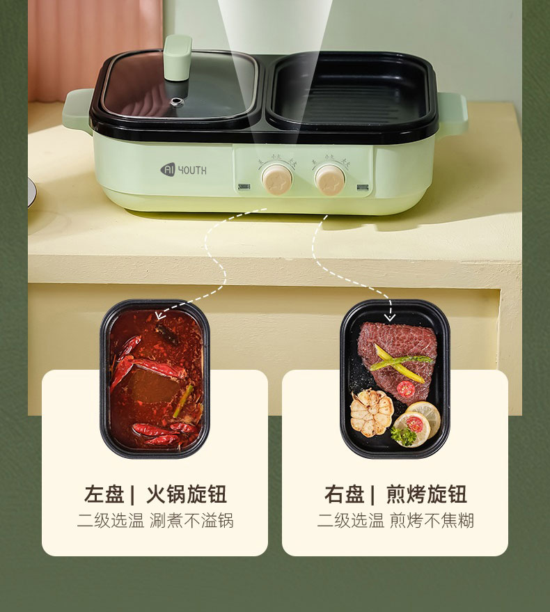 AIYOUTH/艾青春多功能料理锅-薄荷绿DYG-07