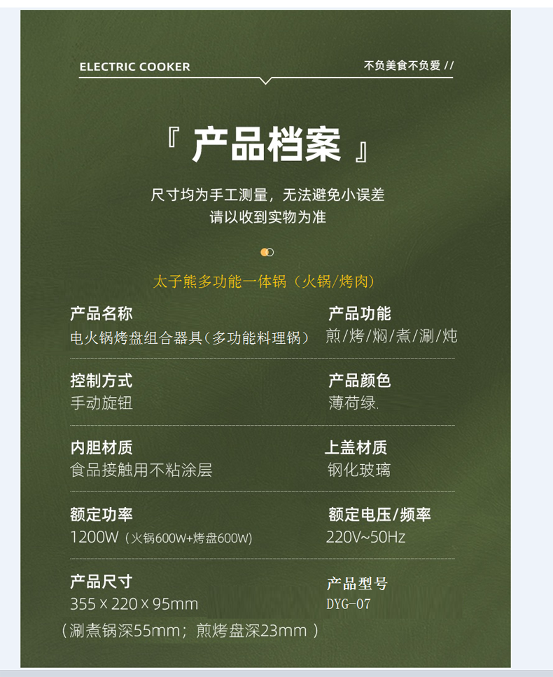 商品名称:AIYOUTH/艾青春多功能料理锅-薄荷绿DYG-07
