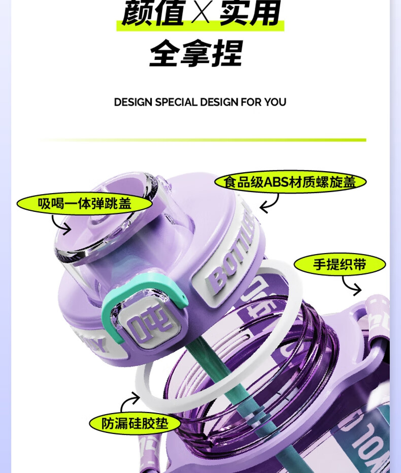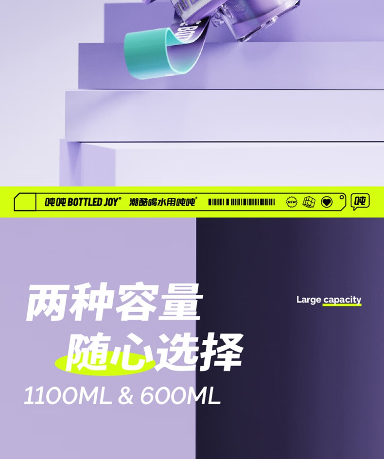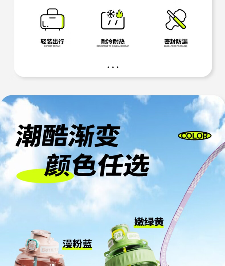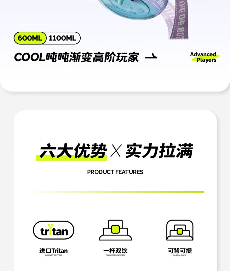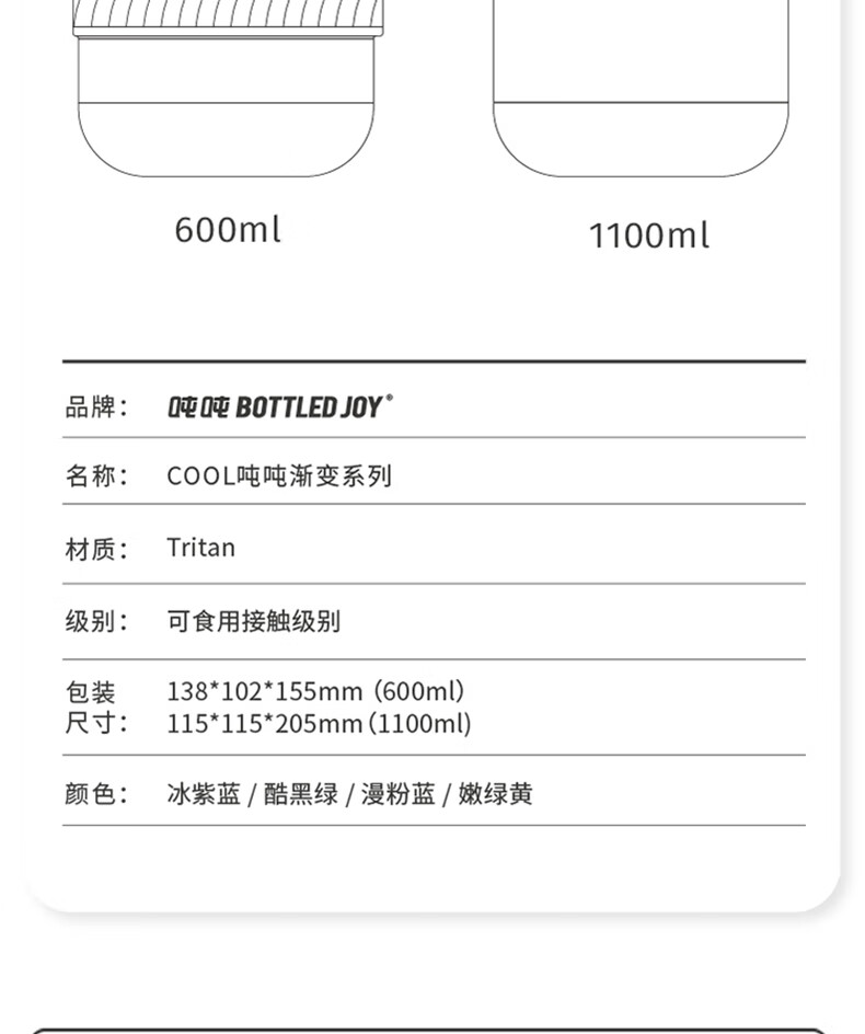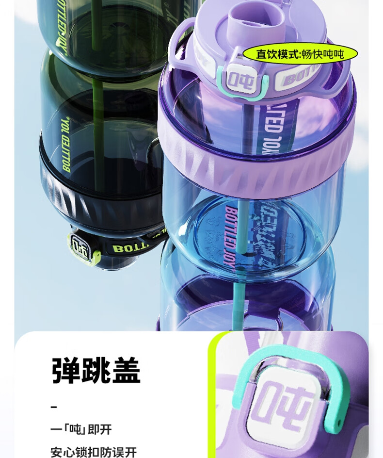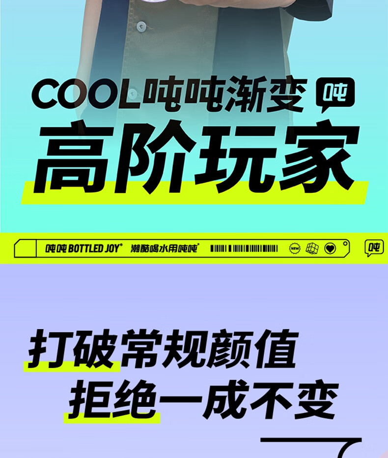 商品名称:BOTTLEDJOY/吨吨COOL吨吨渐变色钢环款吸喝弹跳盖水杯Cool吨吨