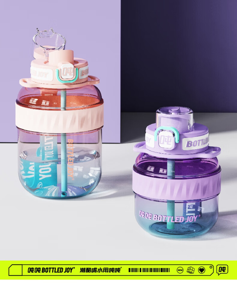 BOTTLEDJOY/吨吨COOL吨吨渐变色钢环款吸喝弹跳盖水杯Cool吨吨