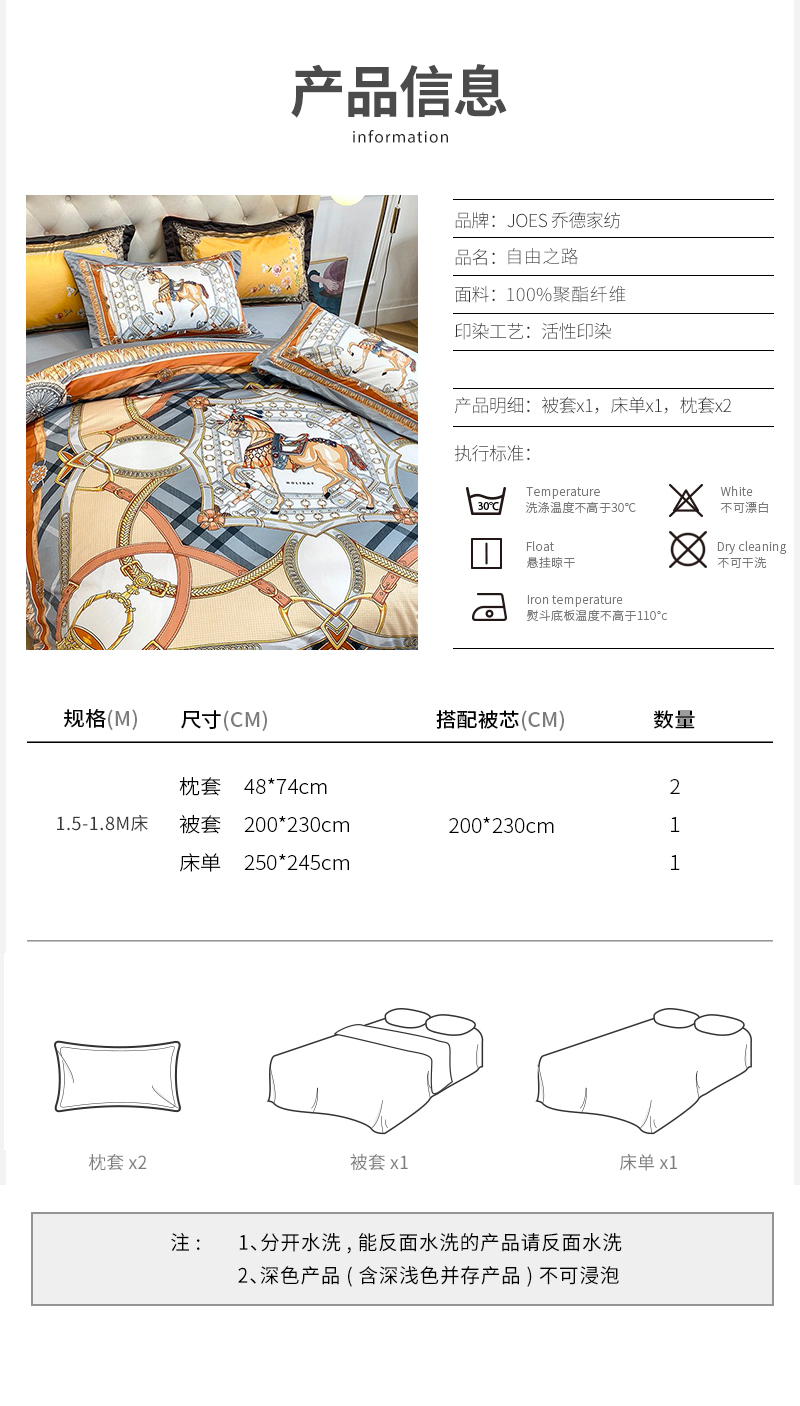 商品名称:JOES HOME/乔德家纺自由之路聚酯纤维床品四件套200*230cm