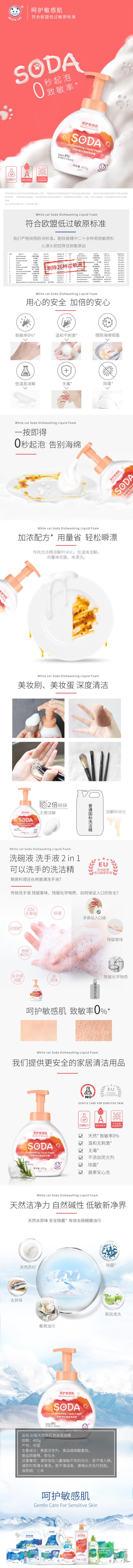 商品名称:白猫天然苏打泡沫洗洁精400g
