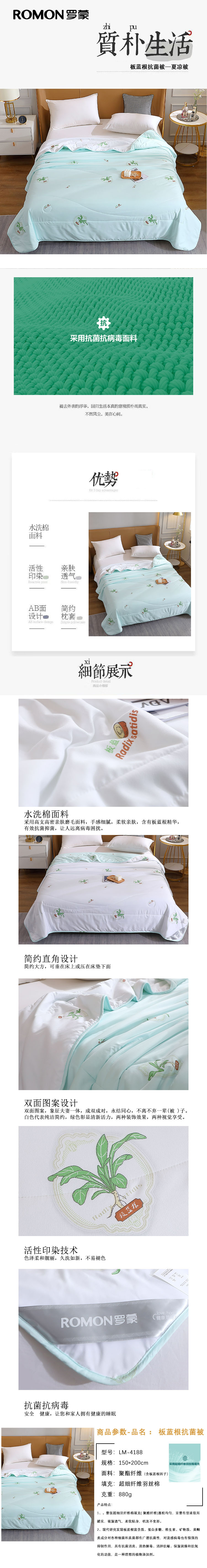 商品名称:ROMON/罗蒙板蓝根抗菌夏凉被150*200cm 880g