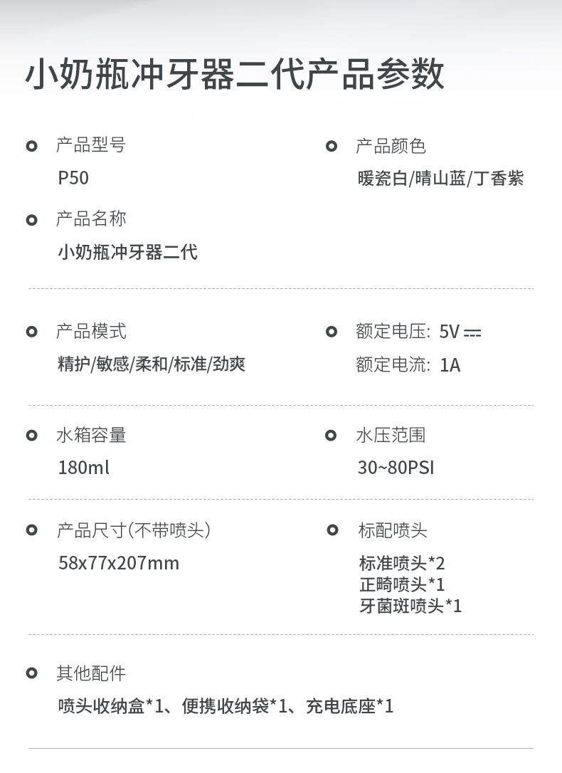 商品名称:倍至二代智能便携小奶瓶冲牙器P50 Pro