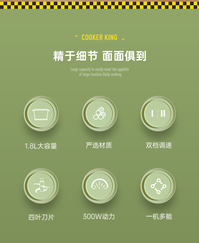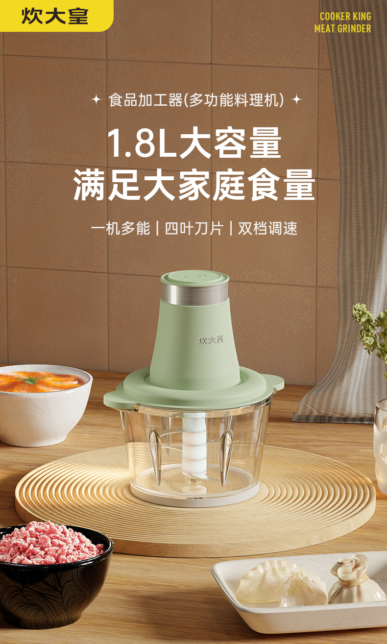 COOKERKING/炊大皇1.8升食品加工器多功能料理机CDH-JR0318