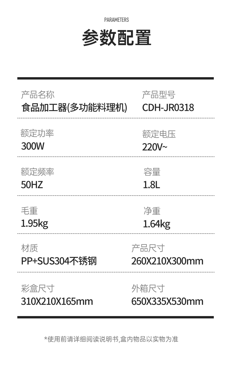商品名称:COOKERKING/炊大皇1.8升食品加工器多功能料理机CDH-JR0318