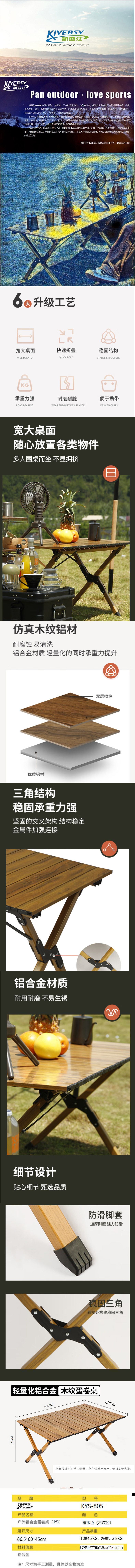 商品名称:凯亚仕户外折叠铝合金蛋卷桌(中号)KYS-805