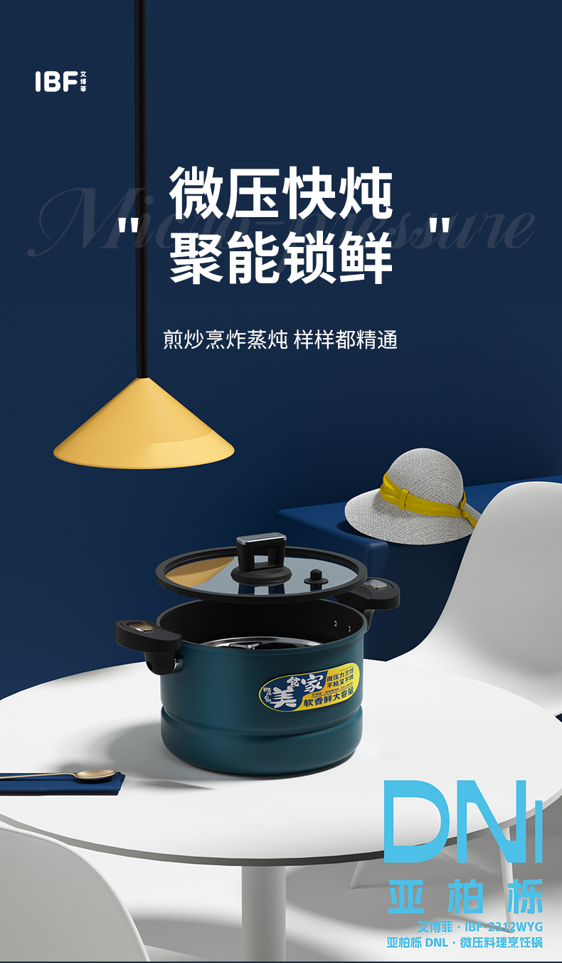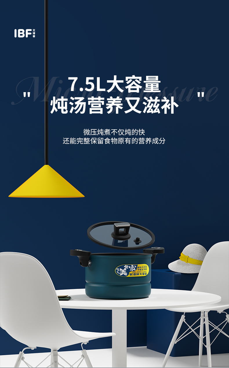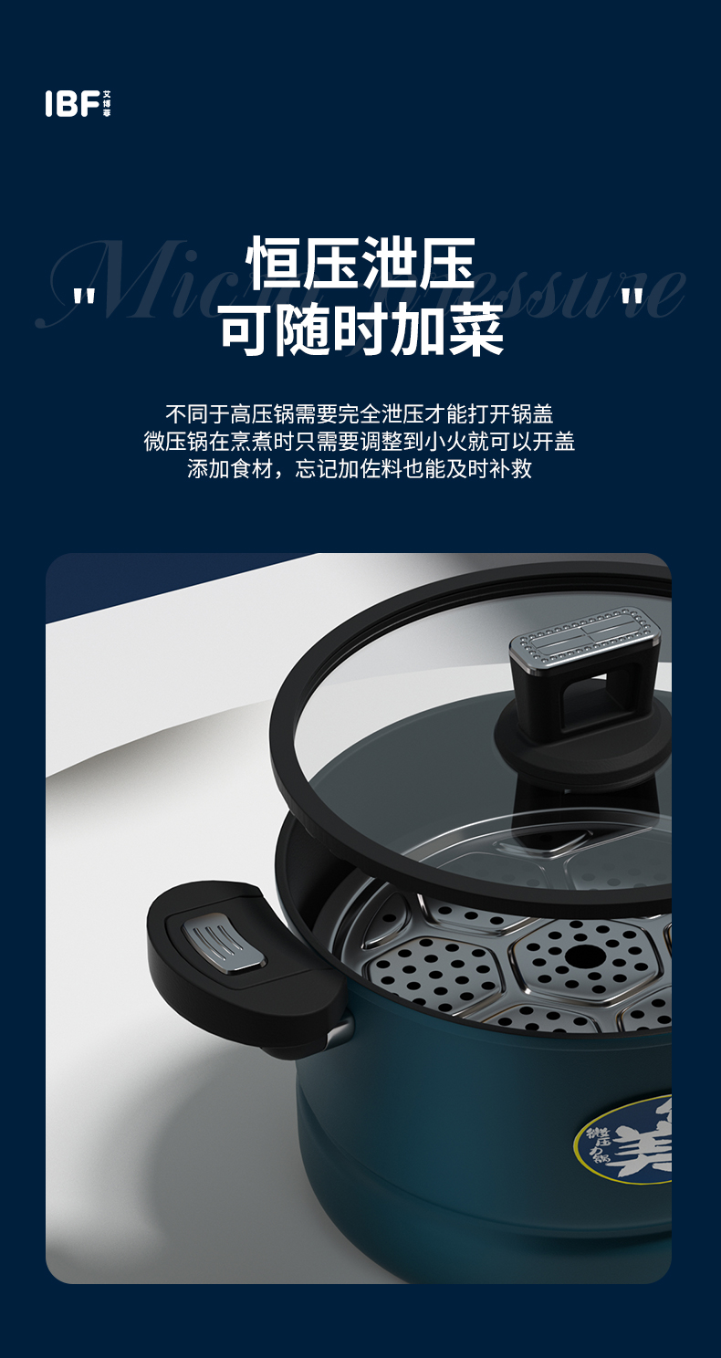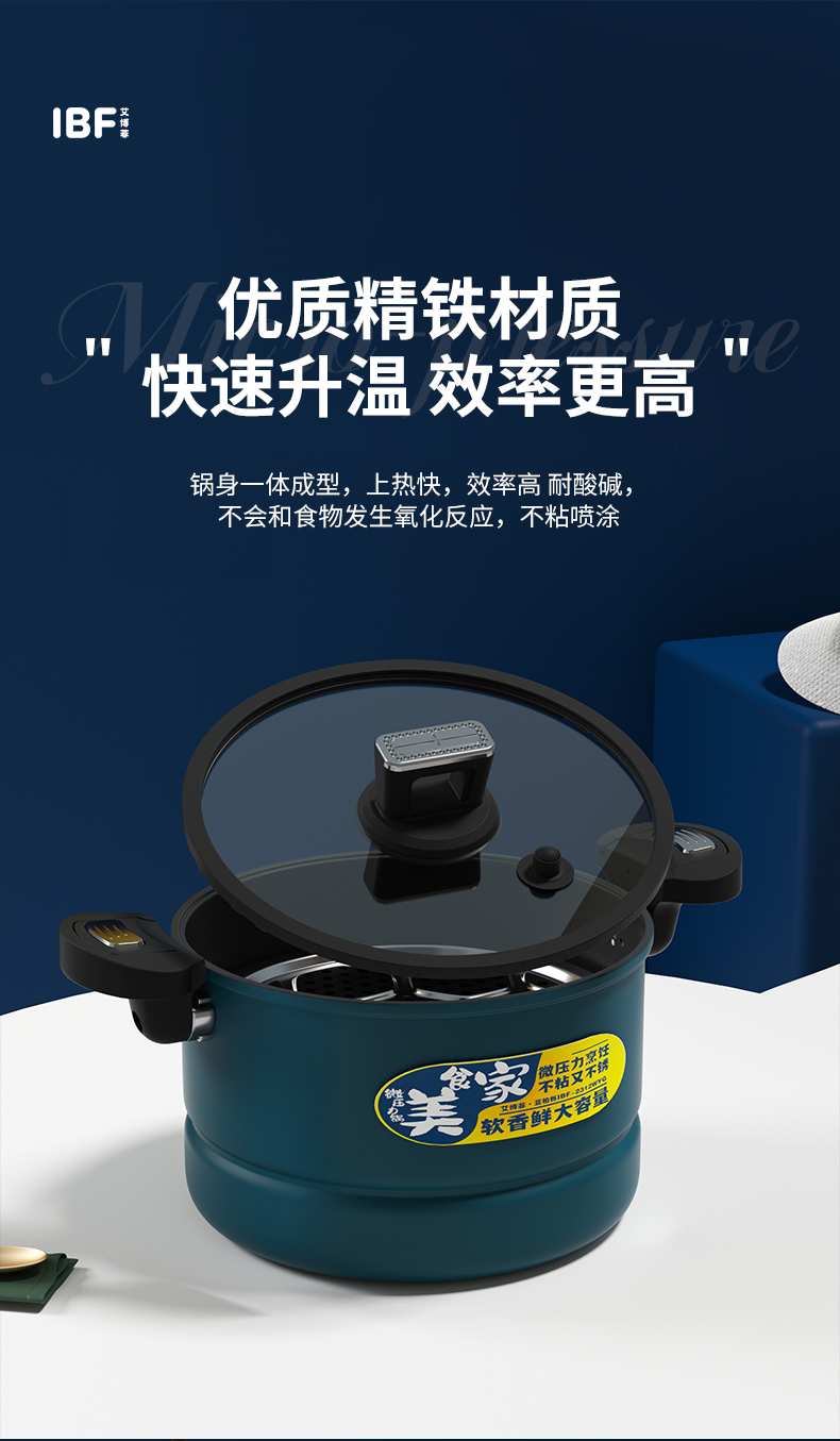 IBF/艾博菲7.5升亚柏栎微压料理烹饪锅IBF-2312WYG