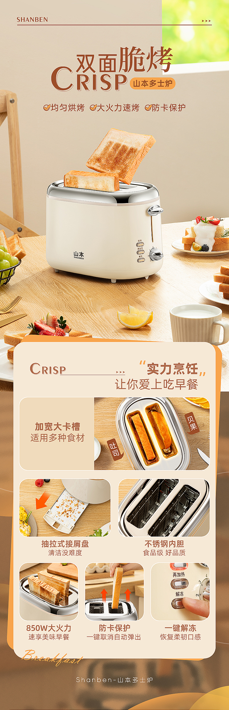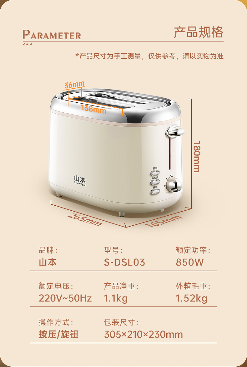 商品名称:【京东/顺丰配送】SHANBEN/山本多士炉早餐机S-DSL03