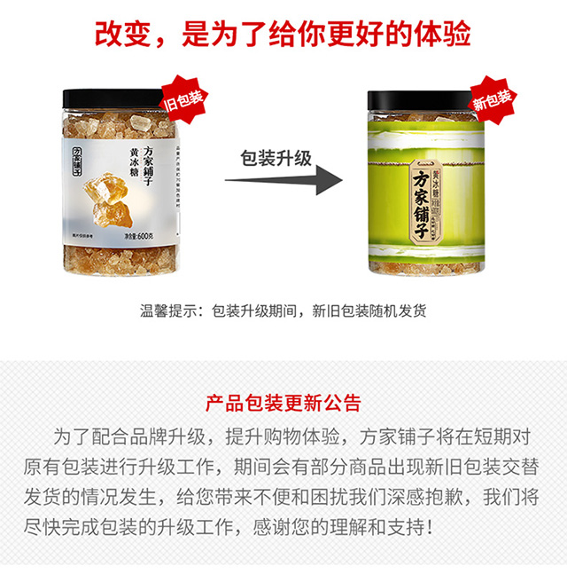 商品名称:方家铺子黄冰糖600g*2瓶 新老包装随机不接受指定