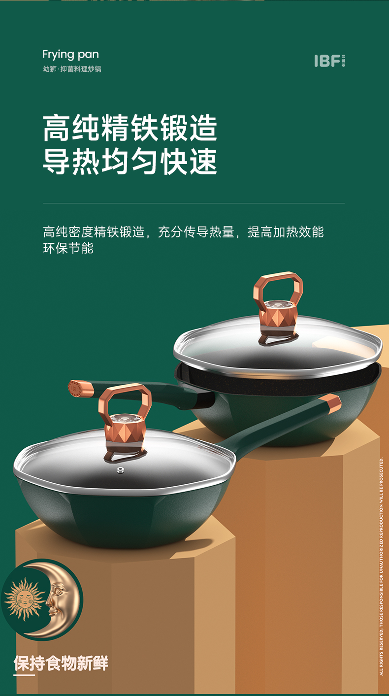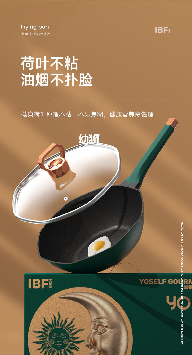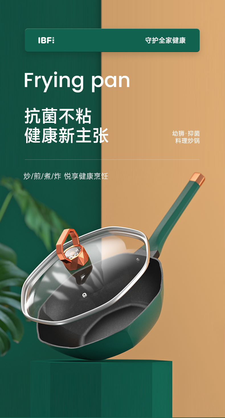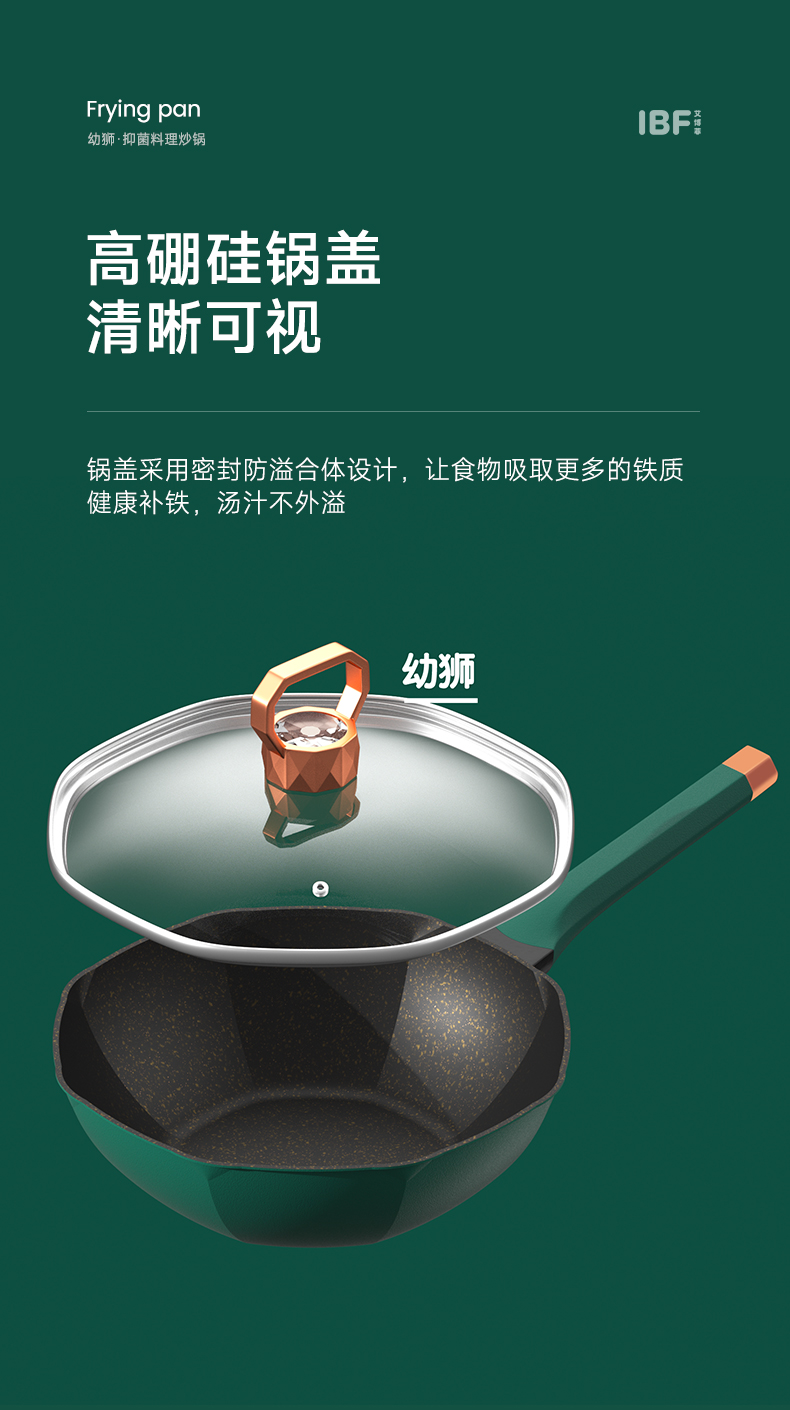 IBF/艾博菲32cm幼狮抑菌料理炒锅IBF2117C32