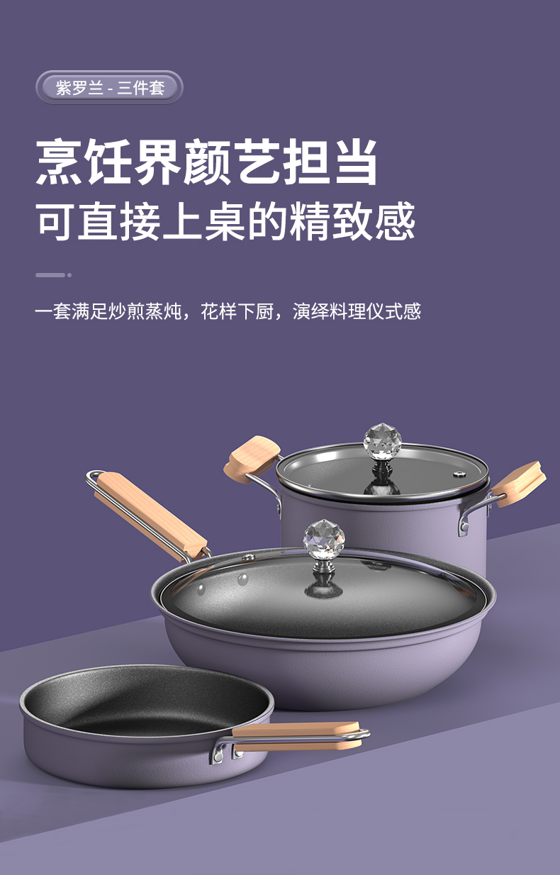 IBF/艾博菲紫罗兰料理套装锅具三件套IBF2116TZ3