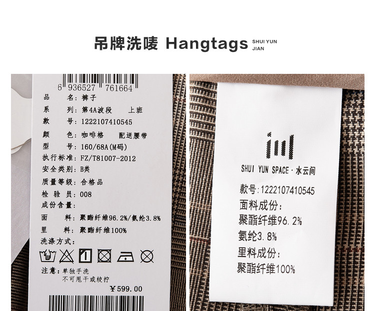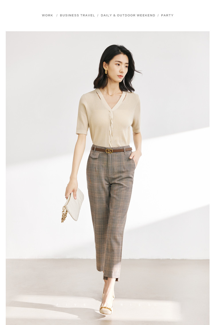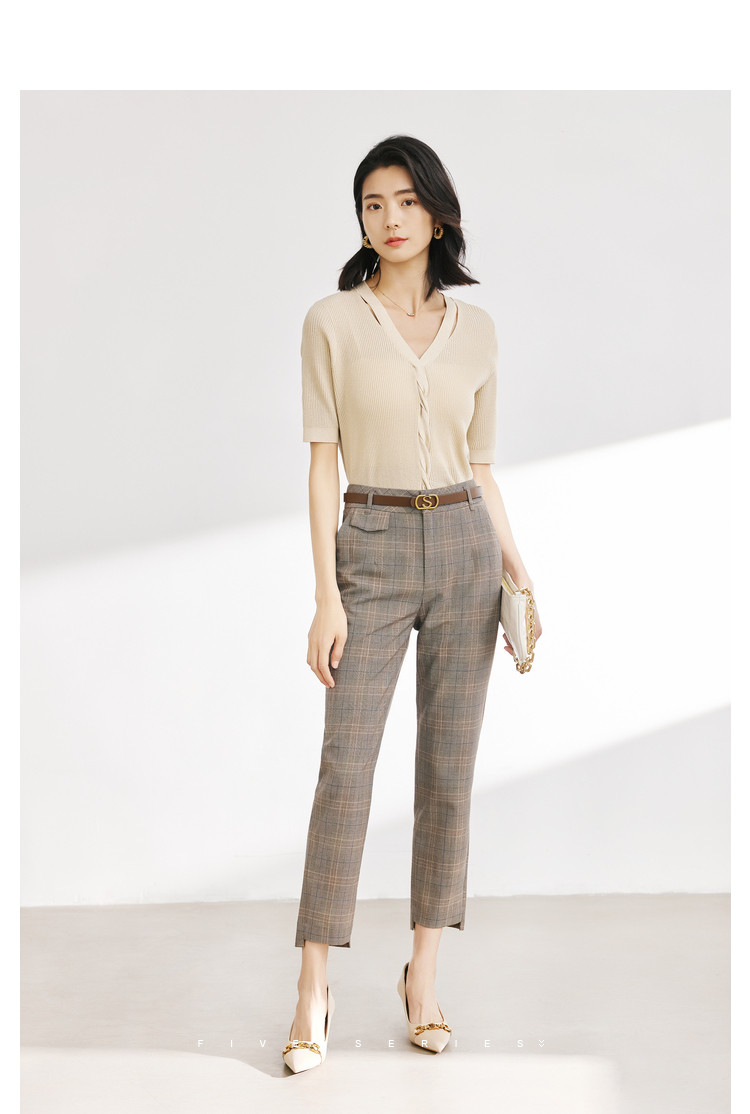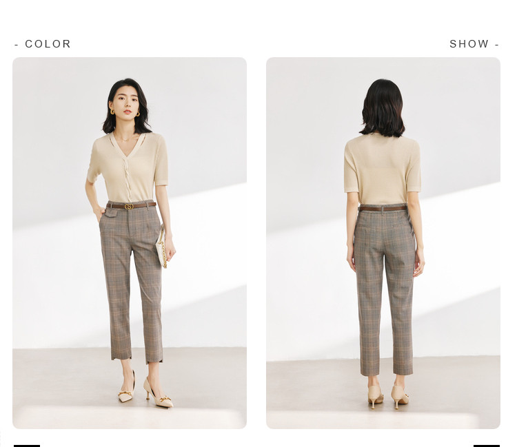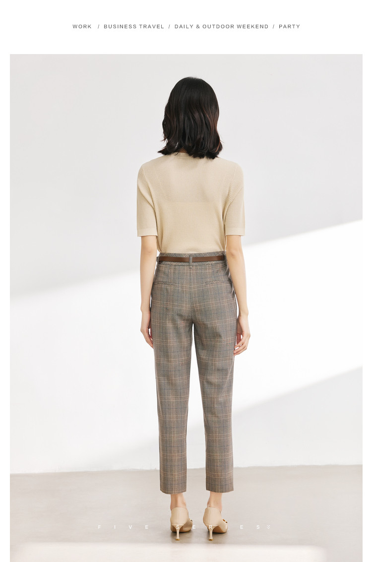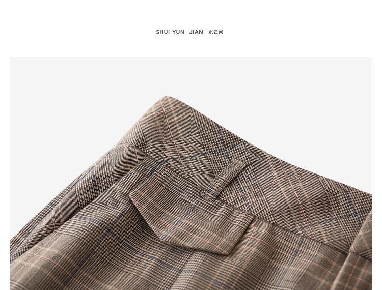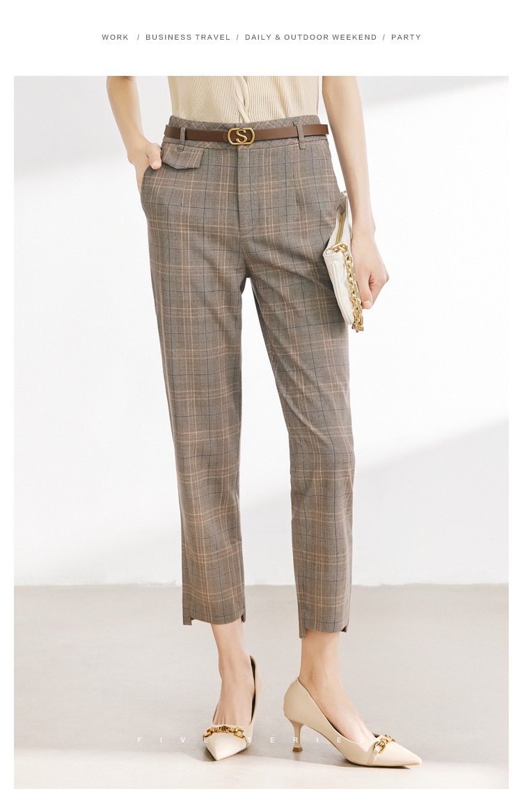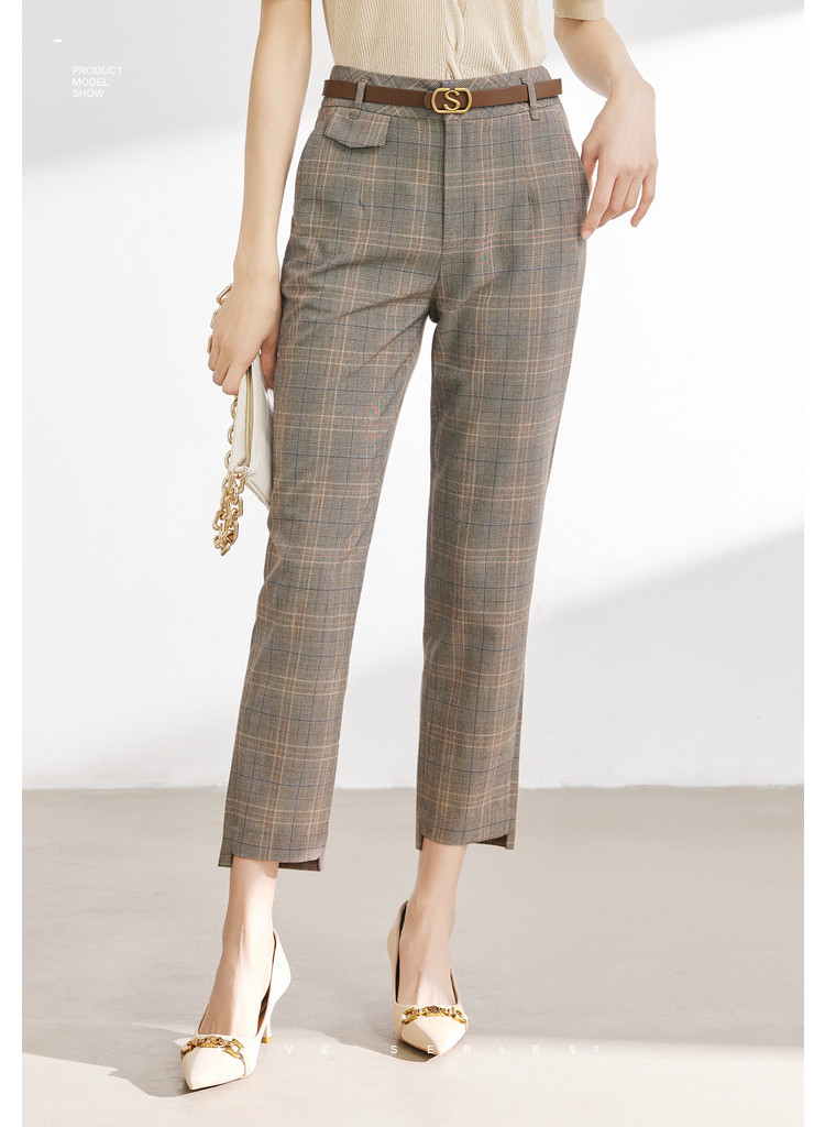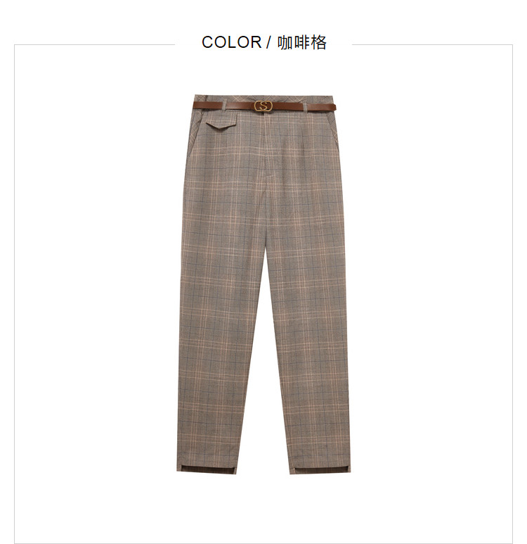 商品名称:【配送腰带】时尚复古格纹裤子女直筒裤铅笔裤子休闲裤九分烟管裤 136195