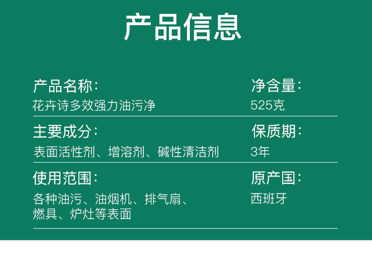 商品名称:Flower ship/花卉诗多效强力油污净529g*3瓶