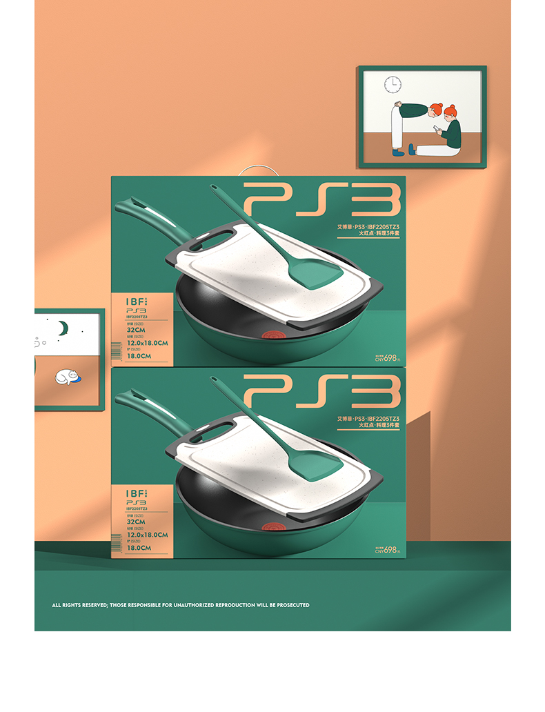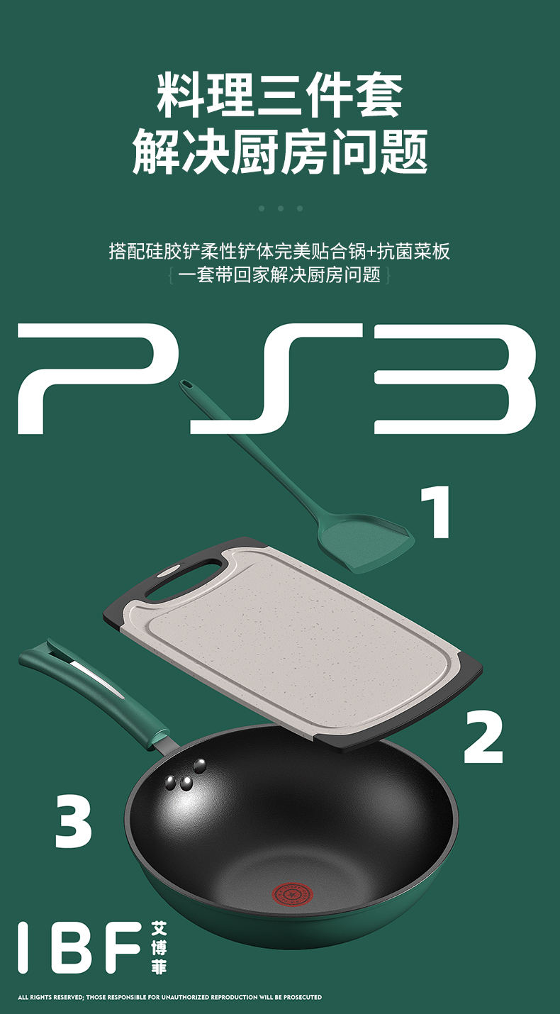 IBF/艾博菲火红点PS3料理锅具三件套IBF2205TZ3
