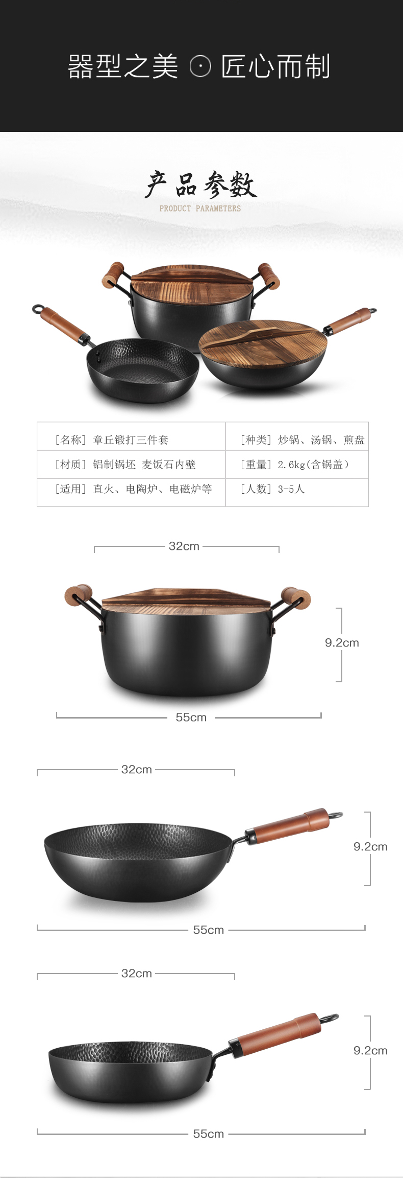 商品名称:德博莱章丘锻打锅具三件套LD-107