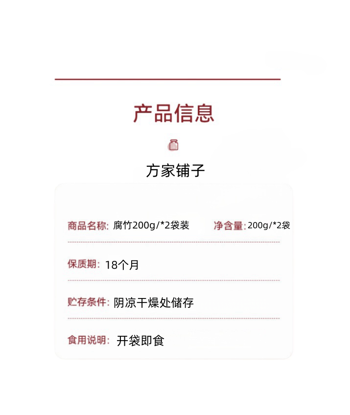 商品名称:方家铺子腐竹200g*2袋