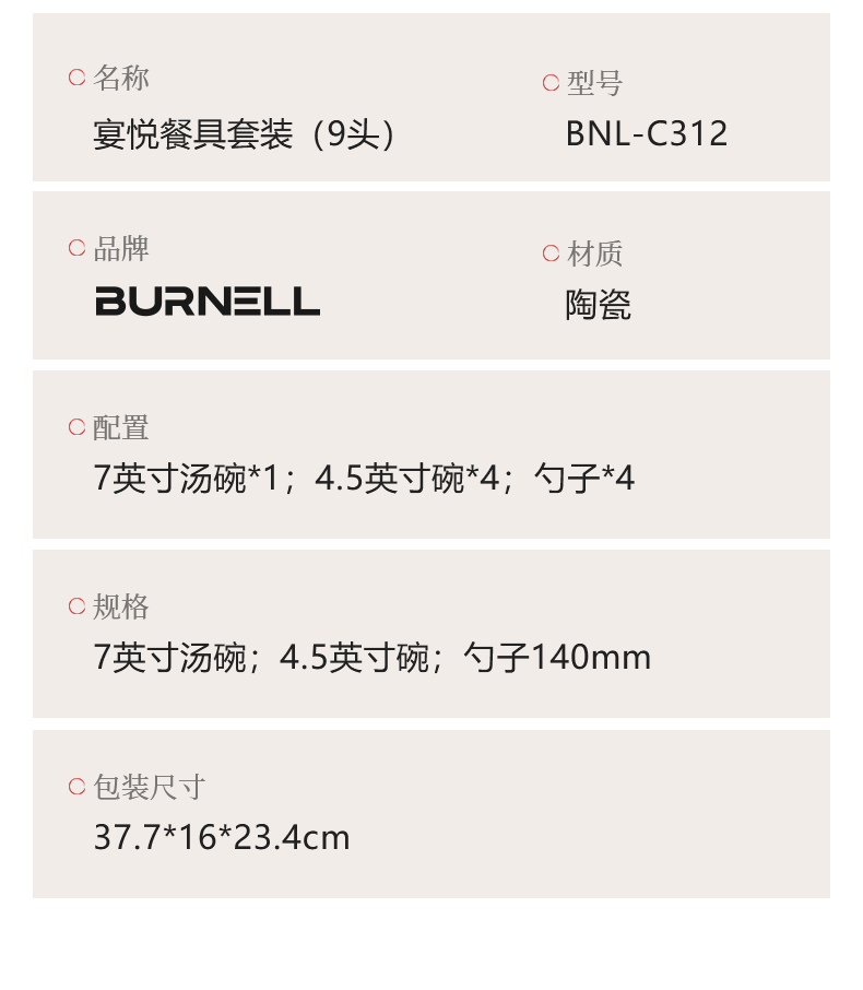 商品名称:BURNELL/巴米樂宴悦餐具九件套装BNL-C312