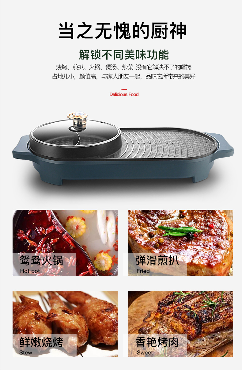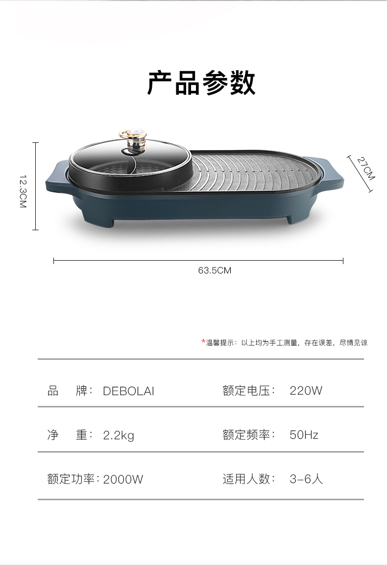 商品名称:德博莱涮烤一体小鸳鸯锅DBL-001