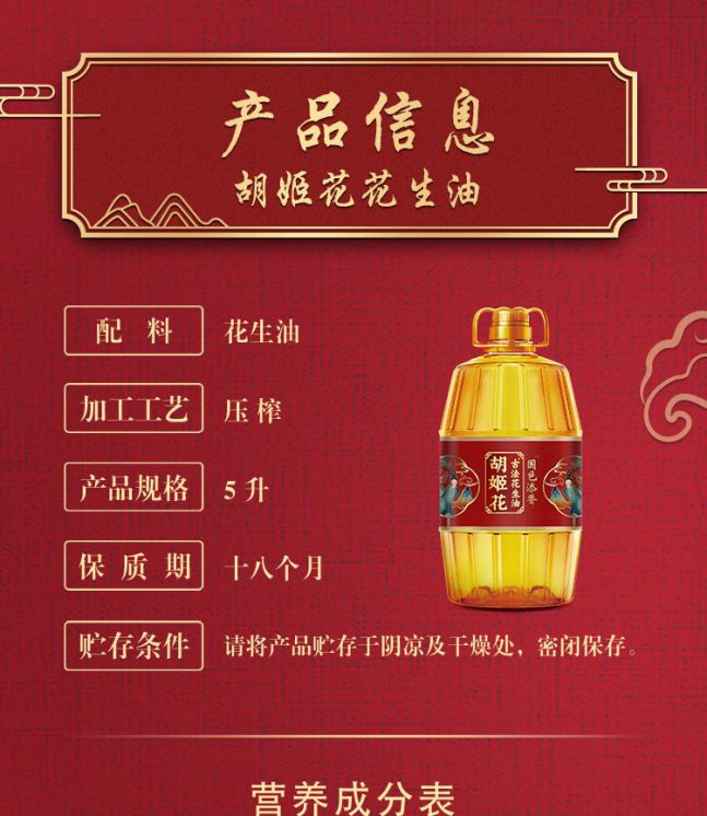 商品名称:【京东/顺丰配送】胡姬花国色添香古法花生油5L
