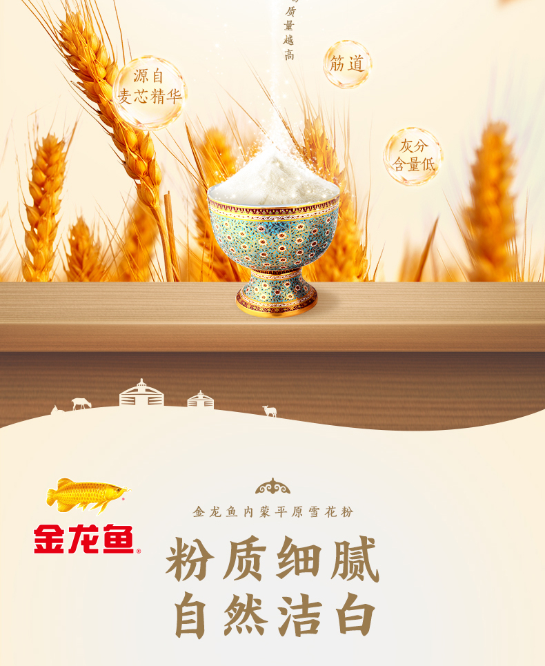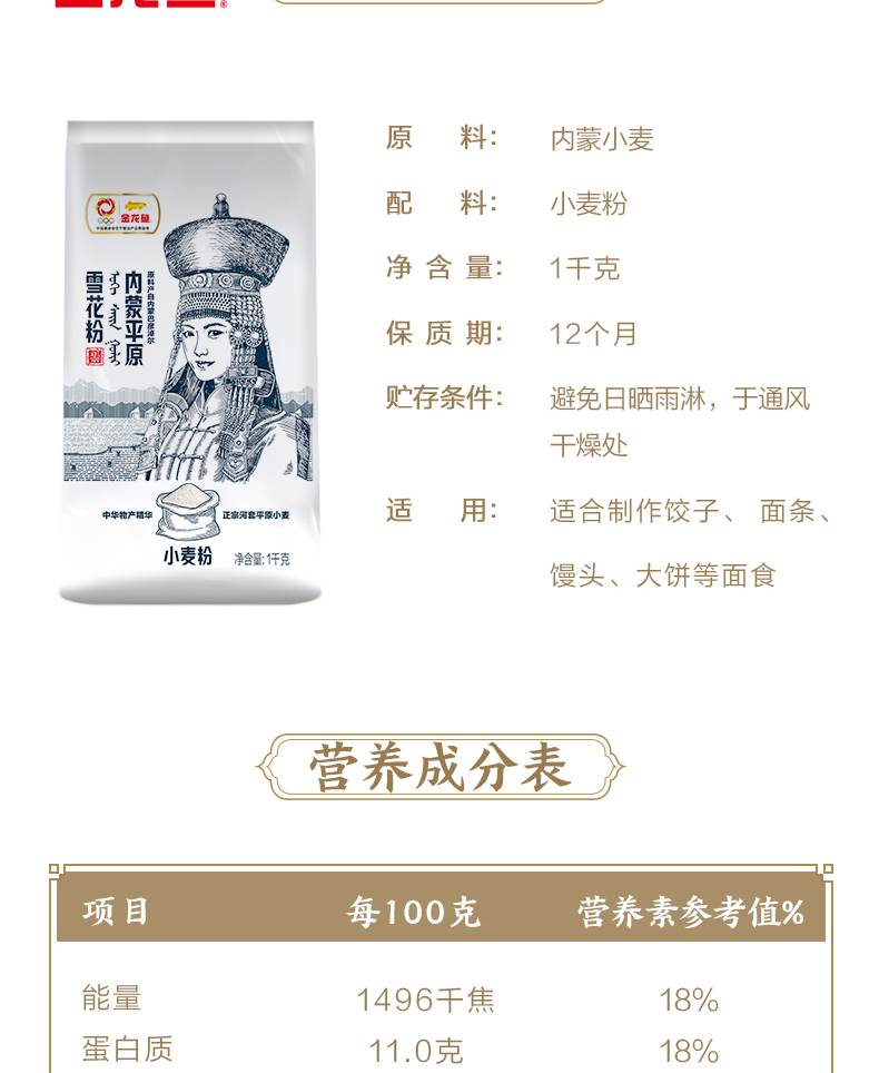 商品名称:金龙鱼内蒙平原雪花粉小麦粉1kg*3袋