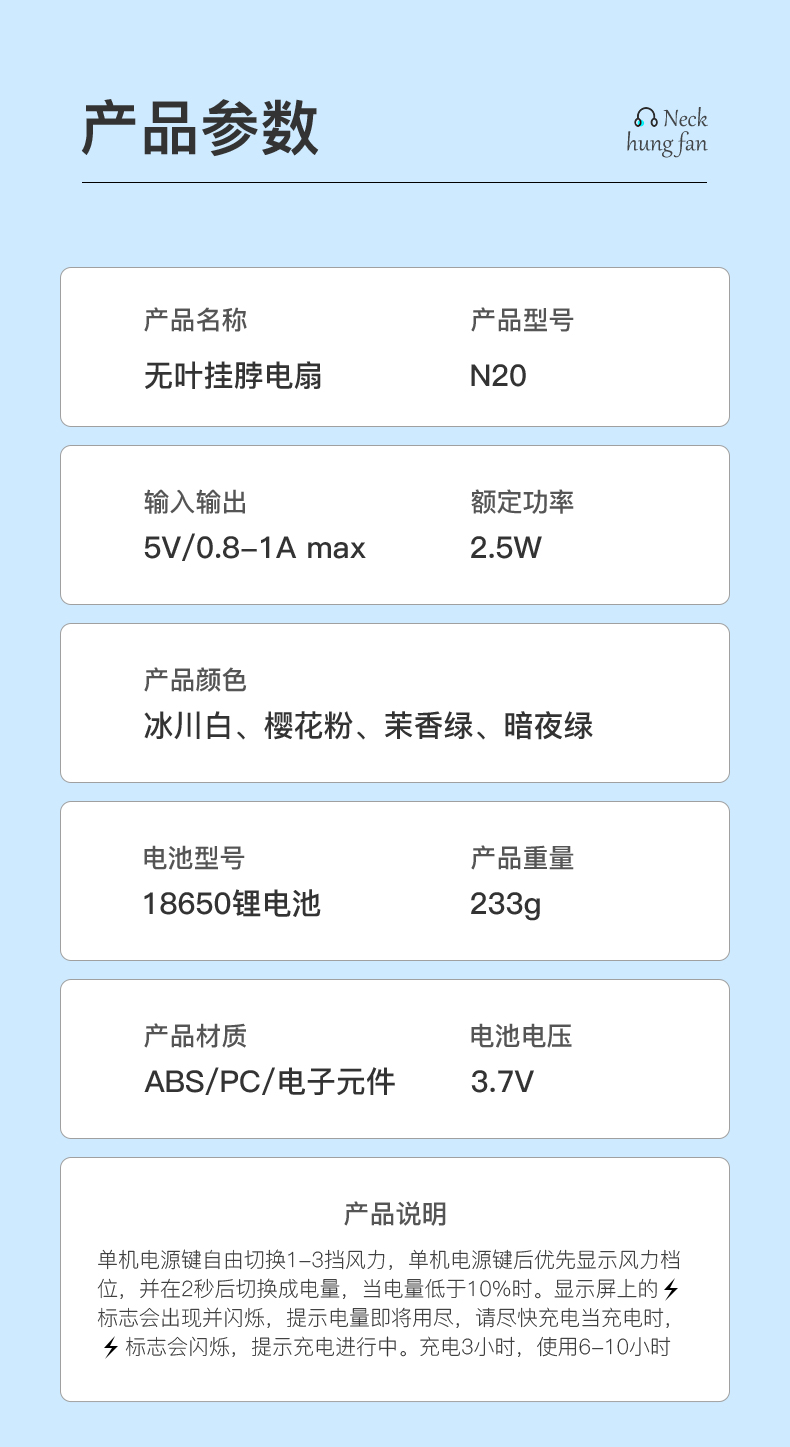 商品名称:AIYOUTH/艾青春无叶挂脖电扇N20