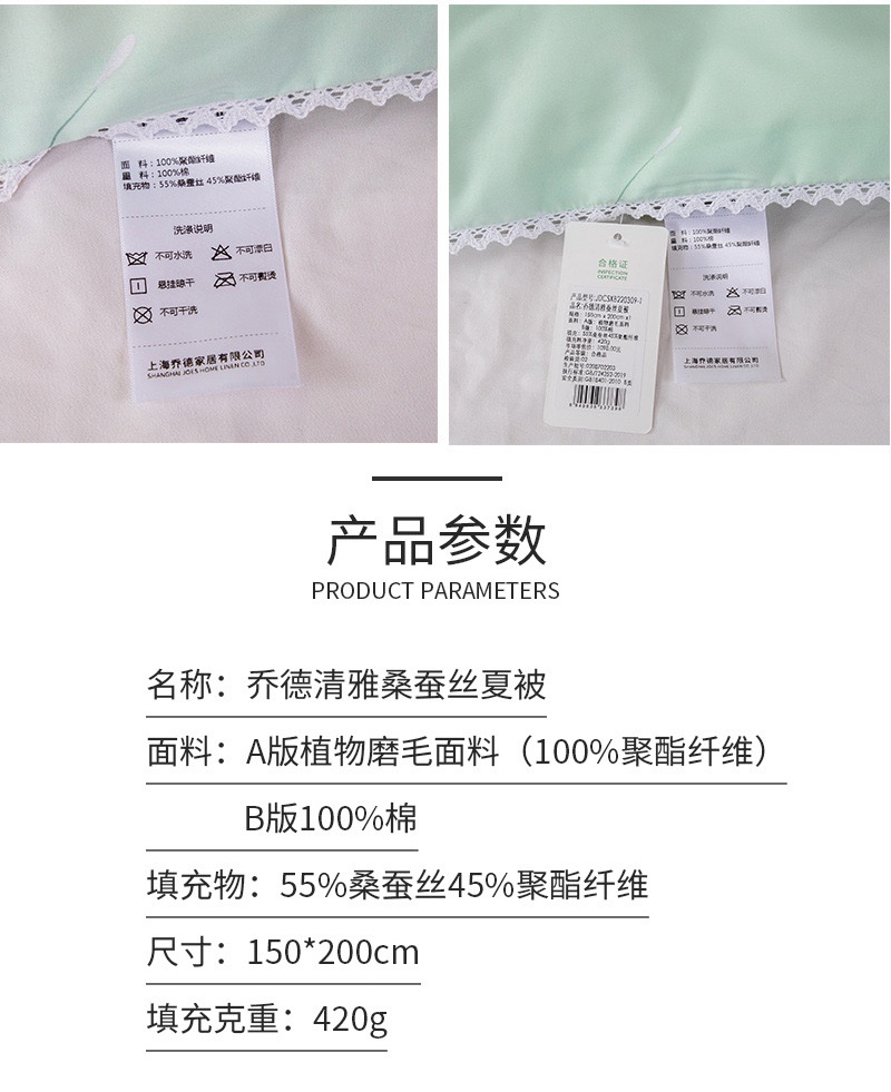 商品名称:JOES HOME/乔德家纺乔德清雅桑蚕丝夏被150*200cm 420g