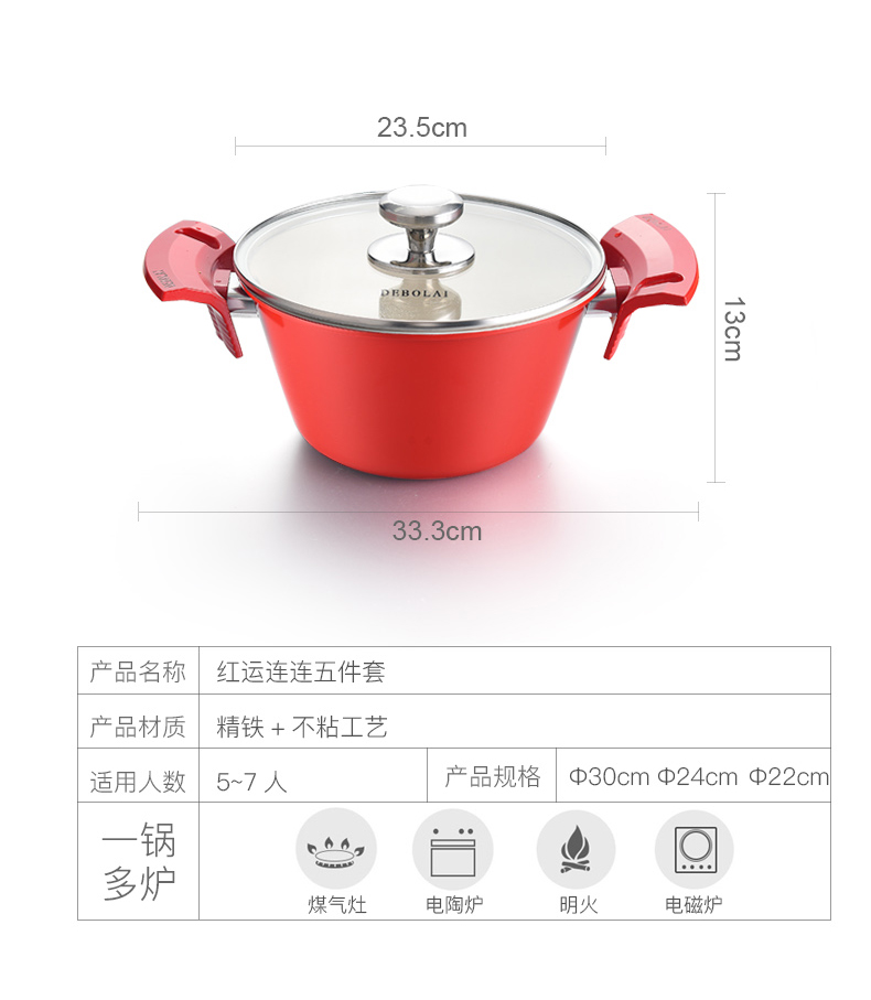 商品名称:德博莱红运连连锅具五件套DBL-311