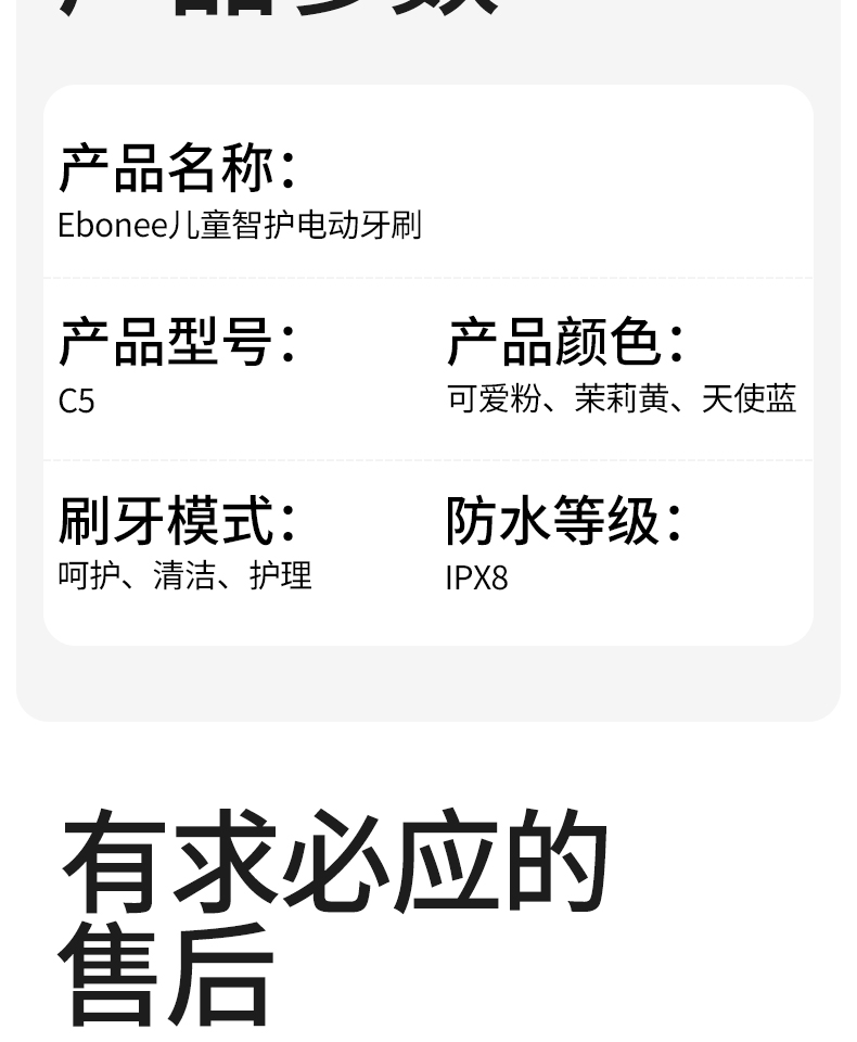 商品名称:Ebonee/艾博尼儿童智护电动牙刷C5