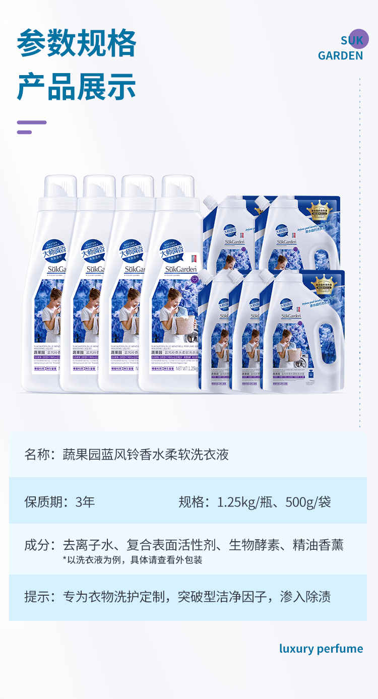 商品名称:蔬果园蓝风铃香水柔软洗衣液9件套组合