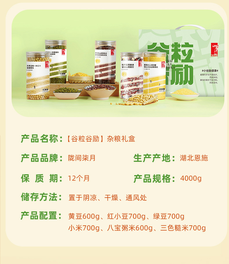 商品名称:陇间柒月谷粒谷励杂粮粥米礼盒4000g