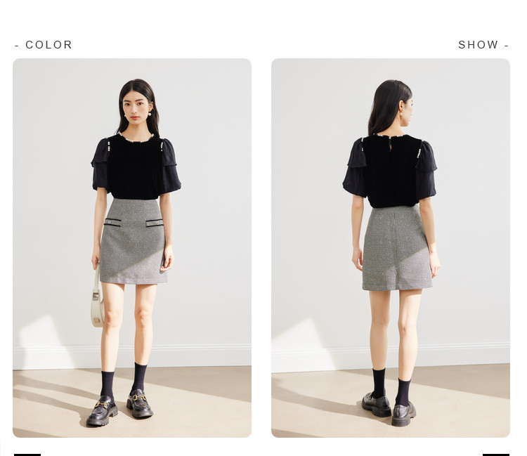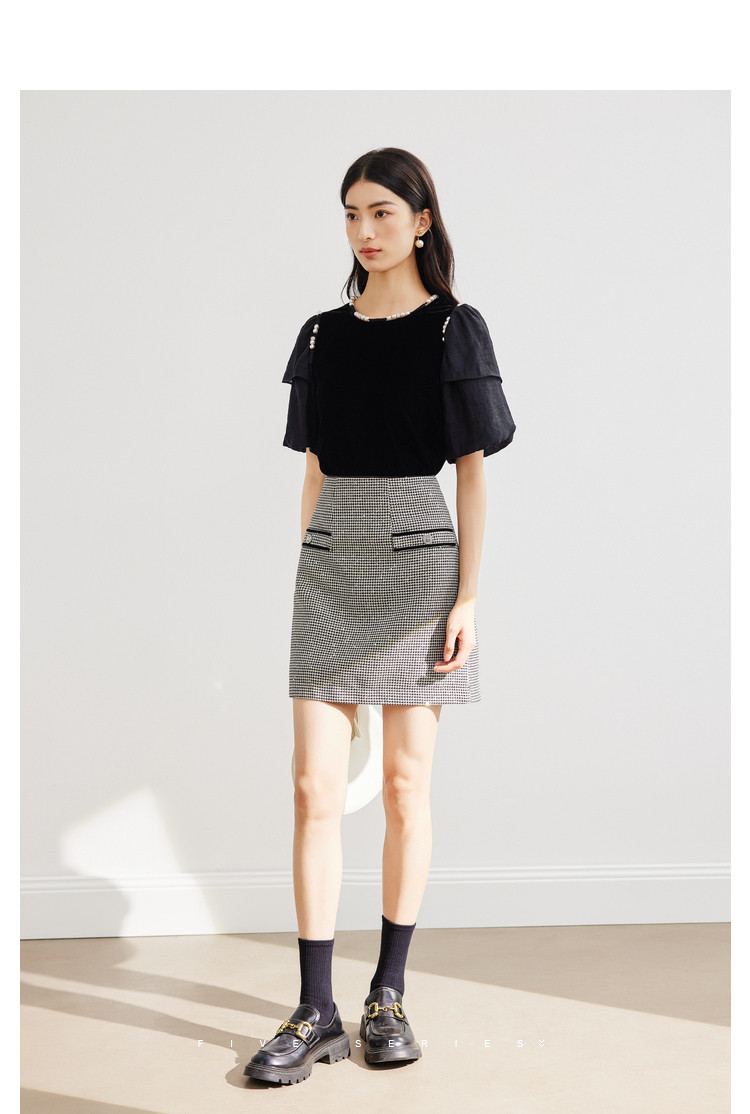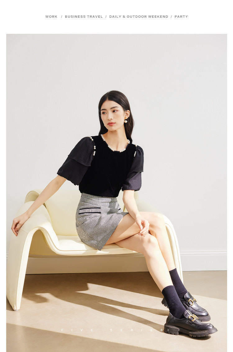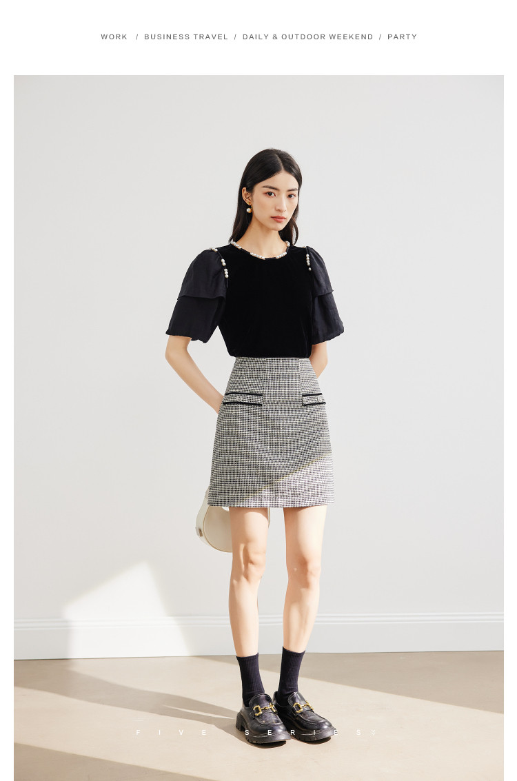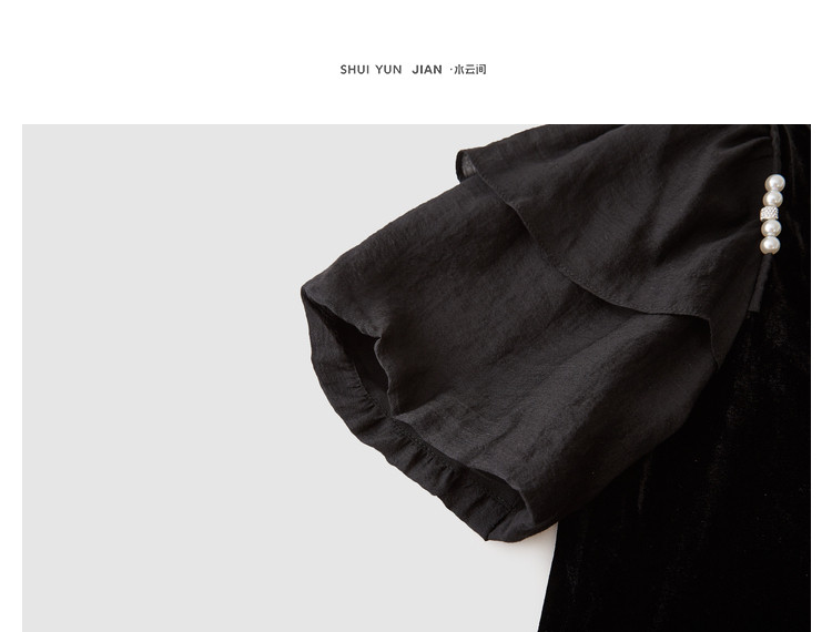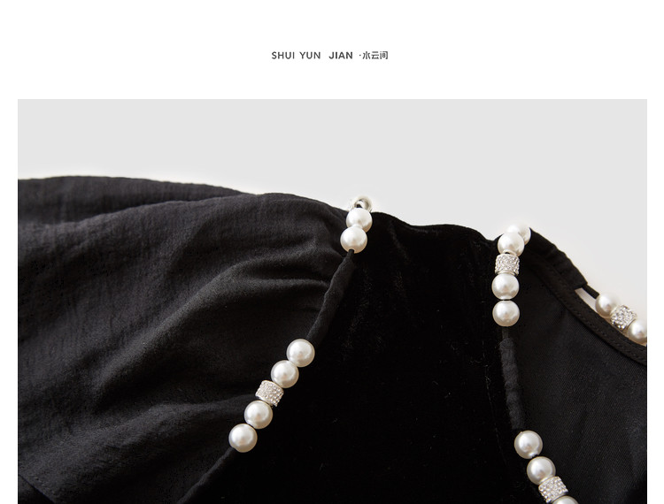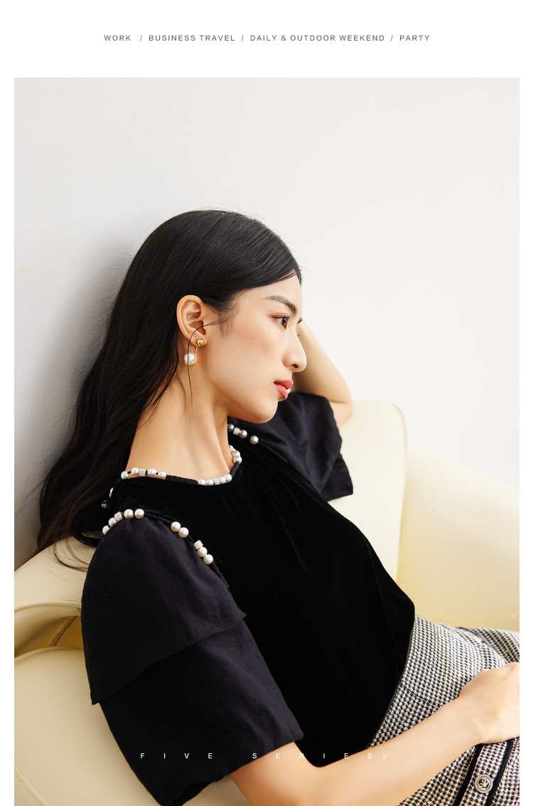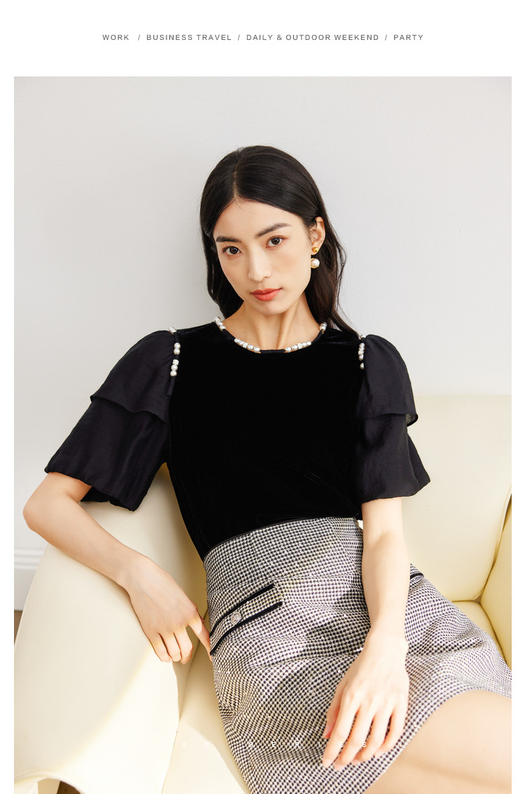商品名称:泡泡袖短袖T恤女装夏款独特设计感减龄优雅百搭气质黑色上衣 387779