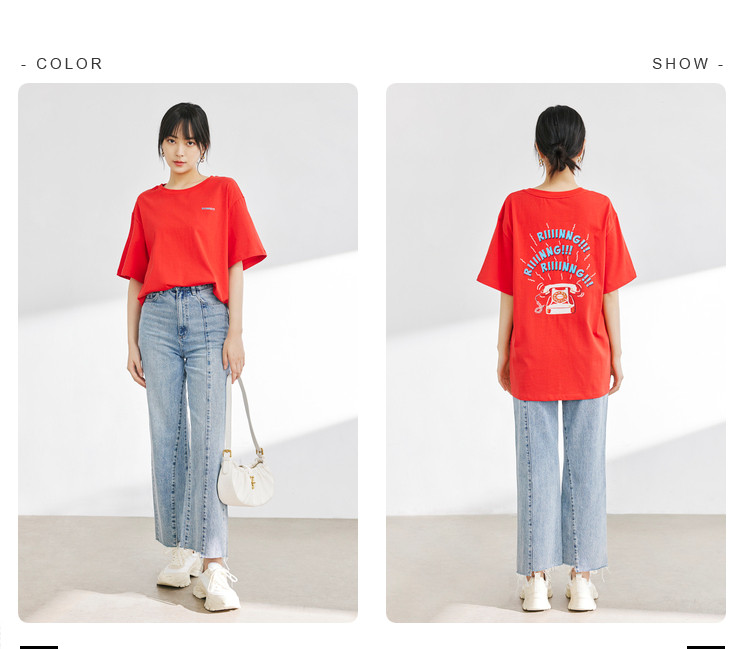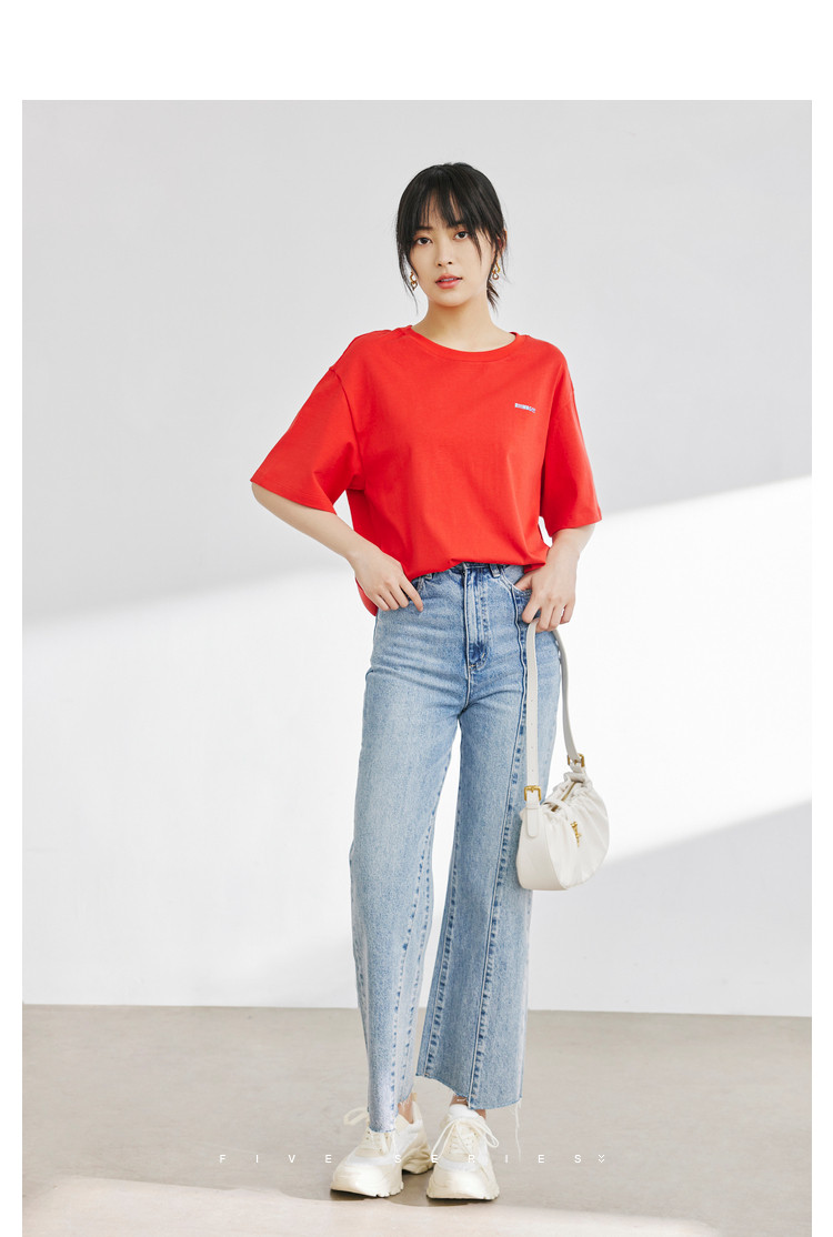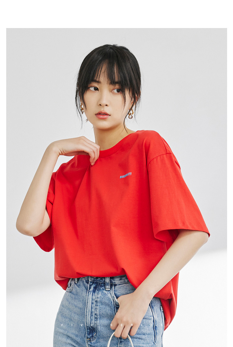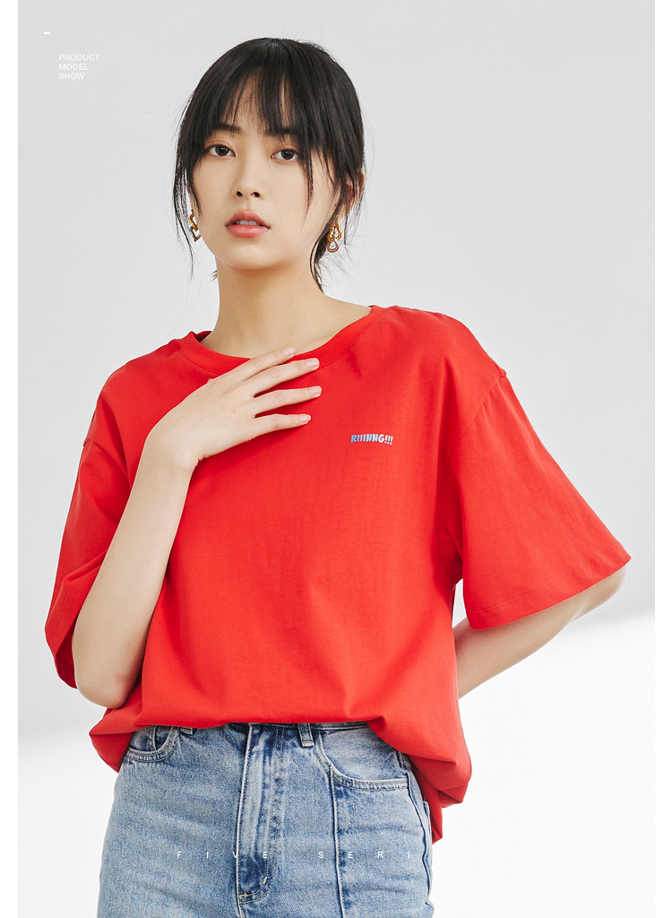 商品名称:宽松圆领短袖t恤女夏款BF风宽松上衣时尚字母印花纯棉体恤女 781827