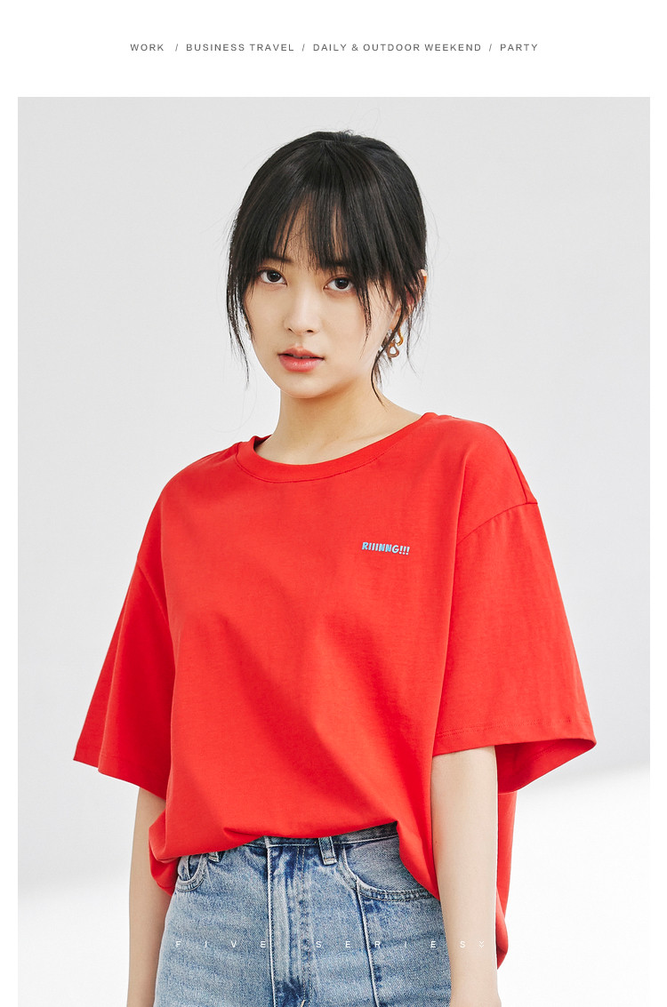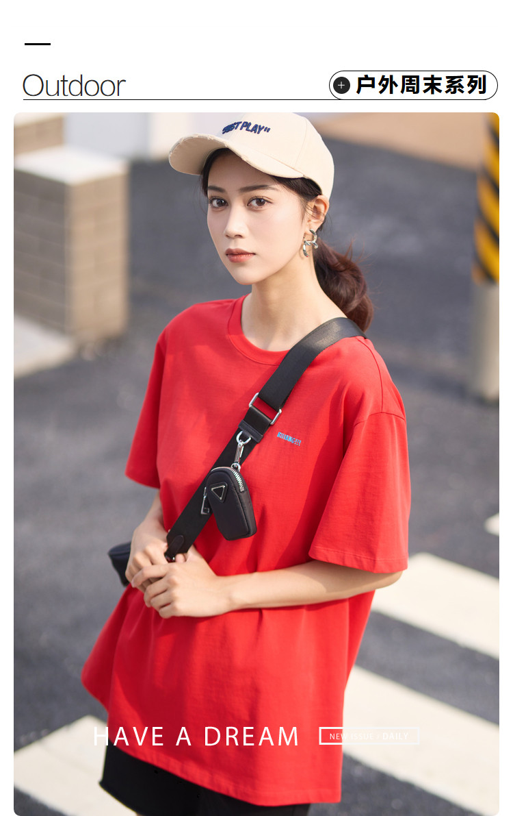 宽松圆领短袖t恤女夏款BF风宽松上衣时尚字母印花纯棉体恤女 781827