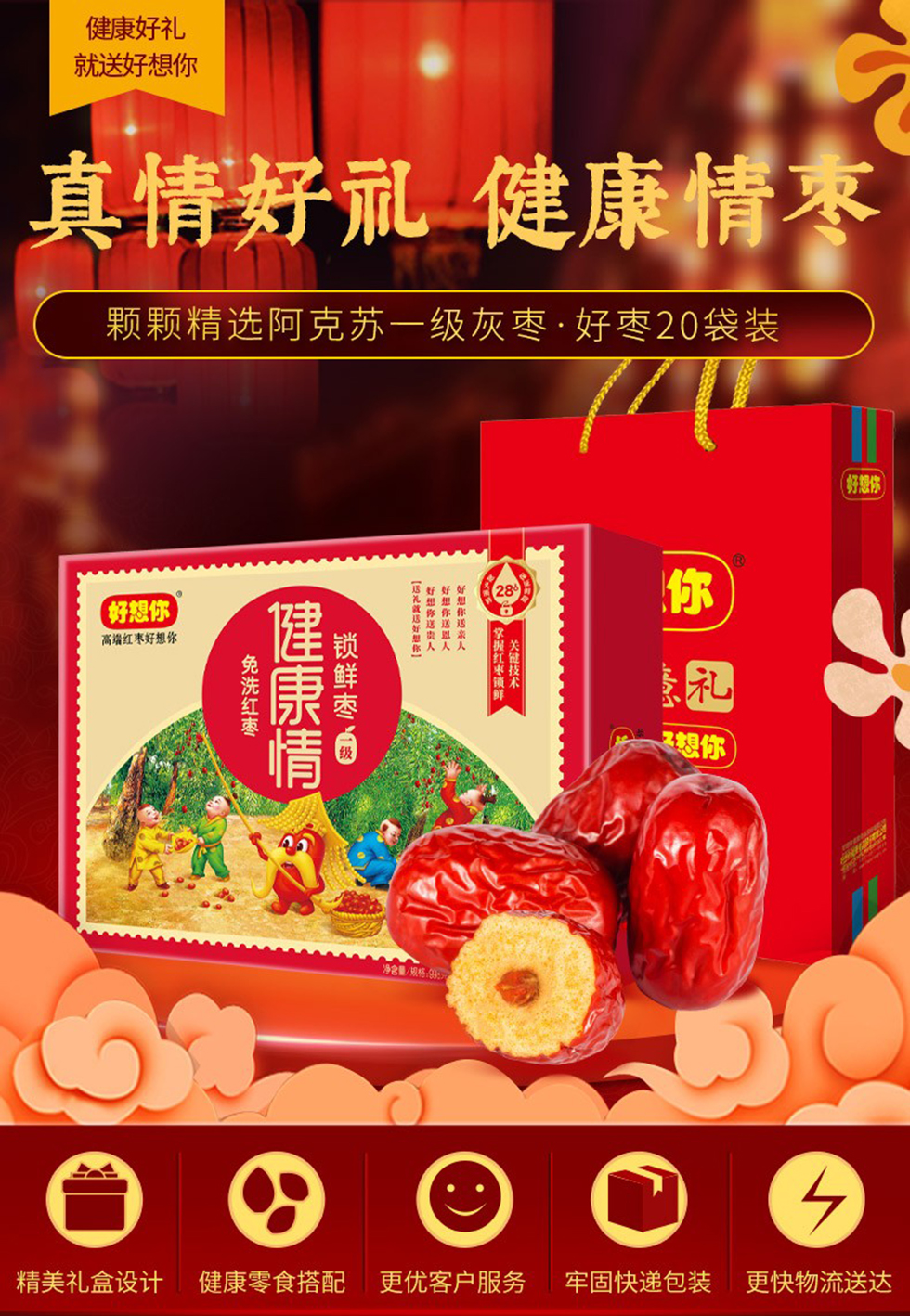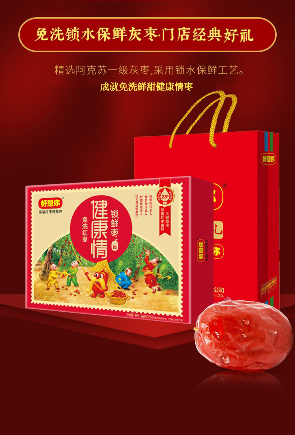 商品名称:【京东/顺丰配送】好想你一级健康情锁鲜枣礼盒998g