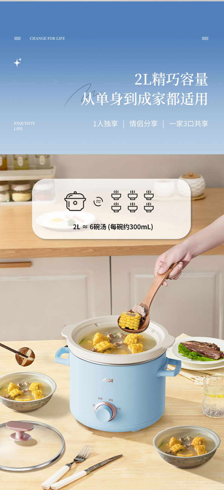 ACA/北美电器2升慢炖锅ALY-H02DJ04J