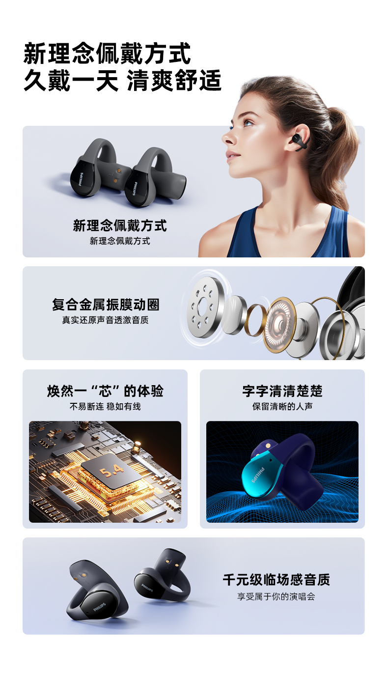 商品名称:PHILIPS/飞利浦耳夹式蓝牙耳机TAT2719