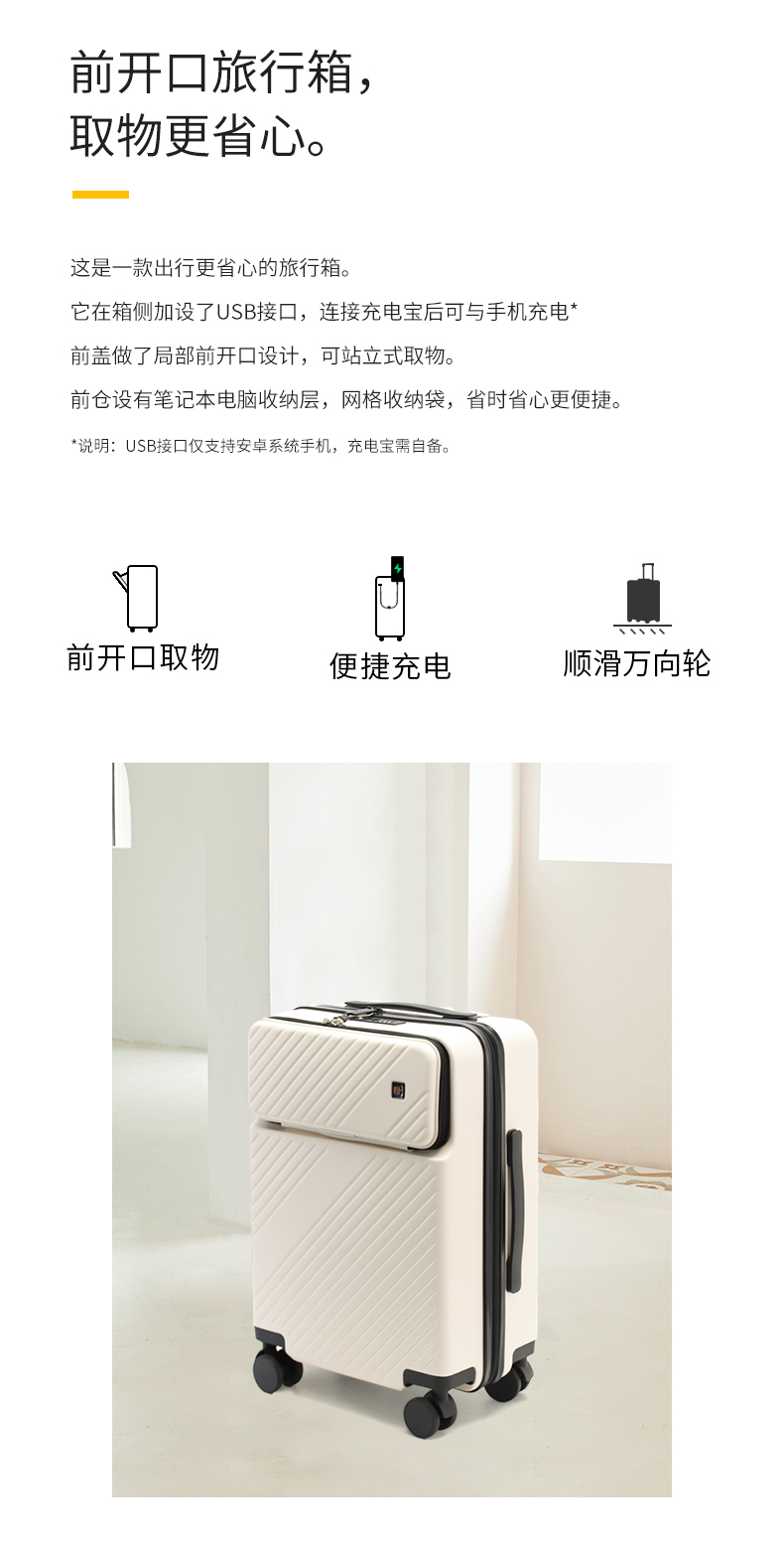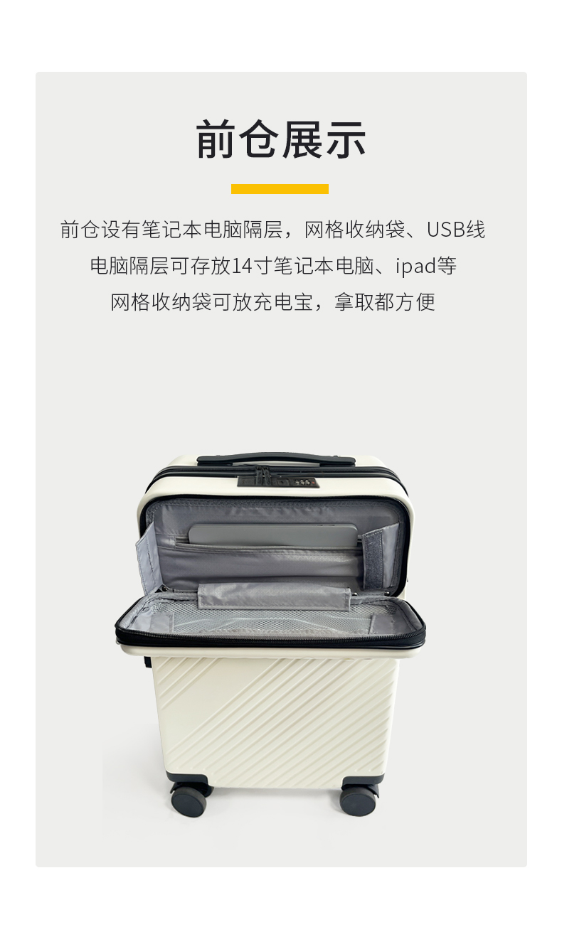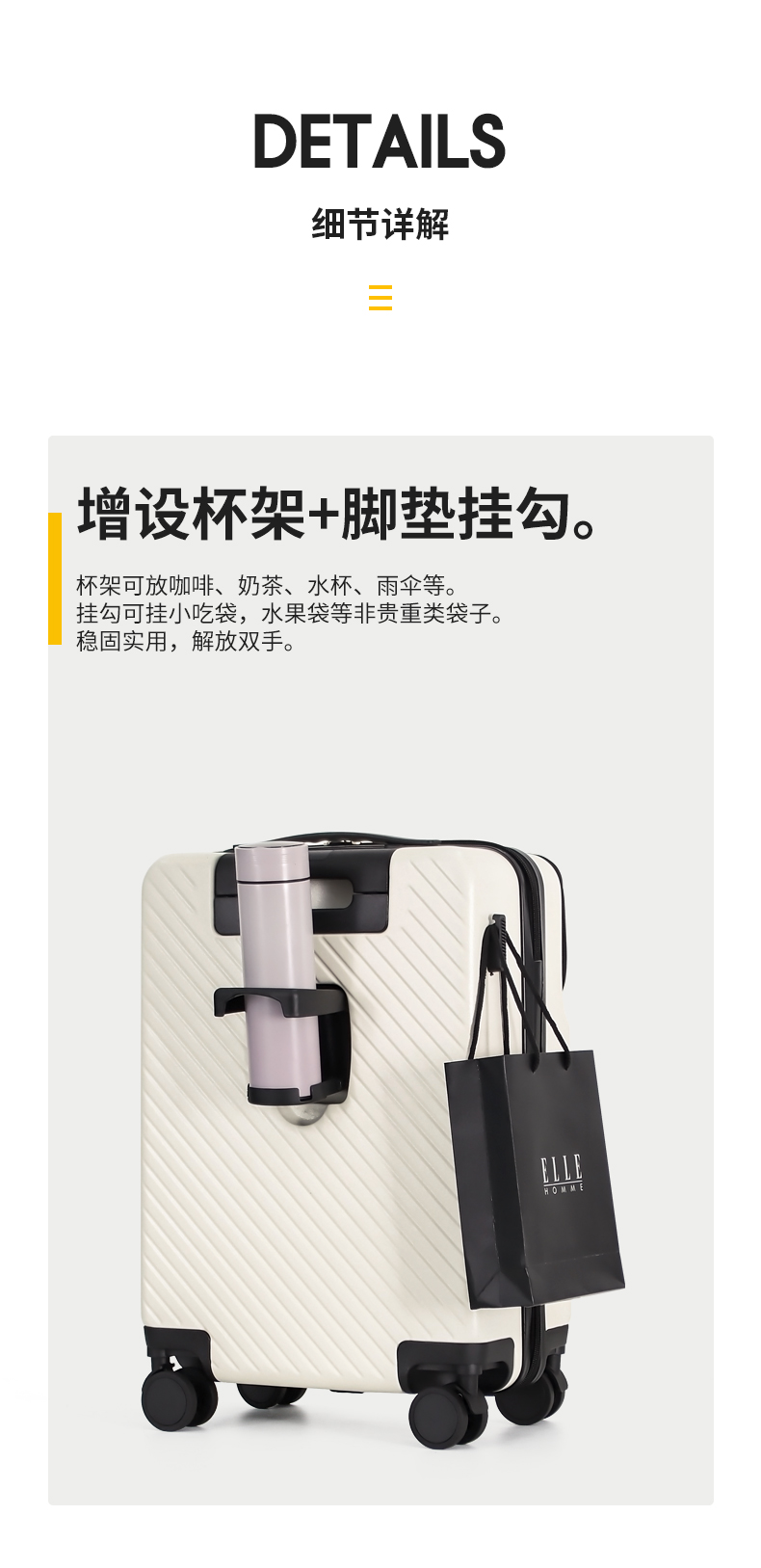 商品名称:ELLE HOMME 20寸前开盖多功能商务拉杆箱EH-2308