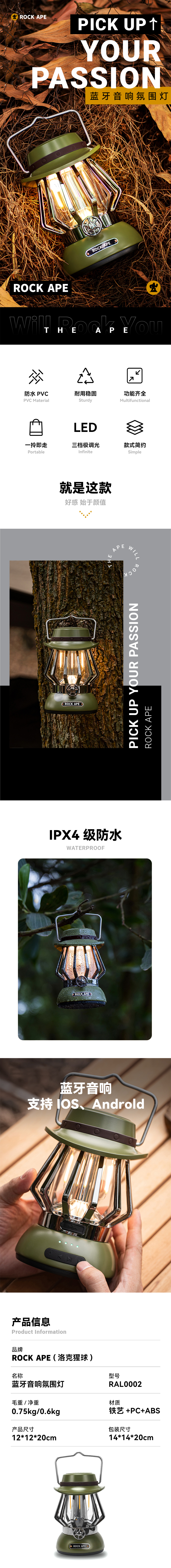 商品名称:ROCK APE/洛克猩球蓝牙音响氛围灯RAL0002