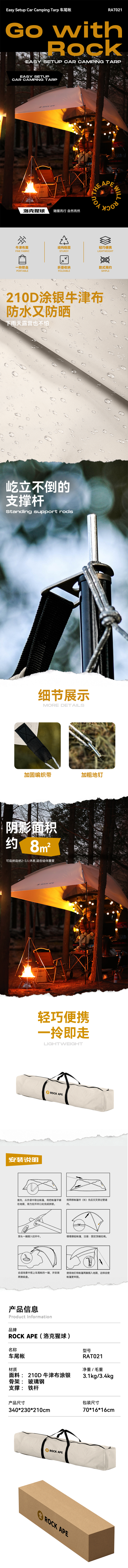 商品名称:ROCK APE/洛克猩球户外车尾帐RAT021