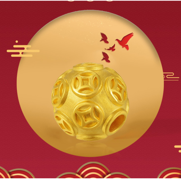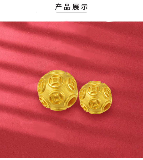 佐禧佑福足金黄金吊坠金钱满满圆珠转运珠黄金串珠首饰1g