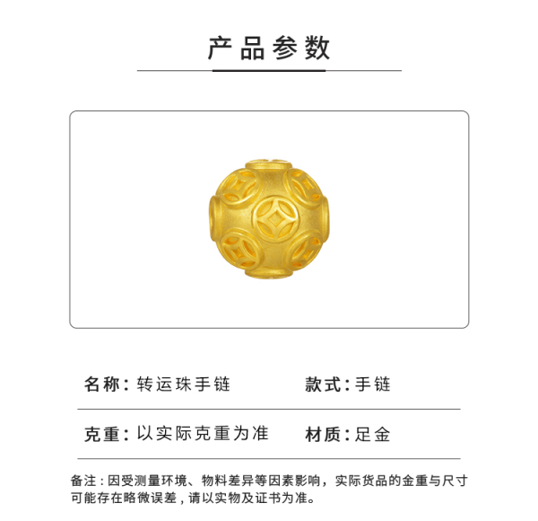 商品名称:佐禧佑福足金黄金吊坠金钱满满圆珠转运珠黄金串珠首饰1g