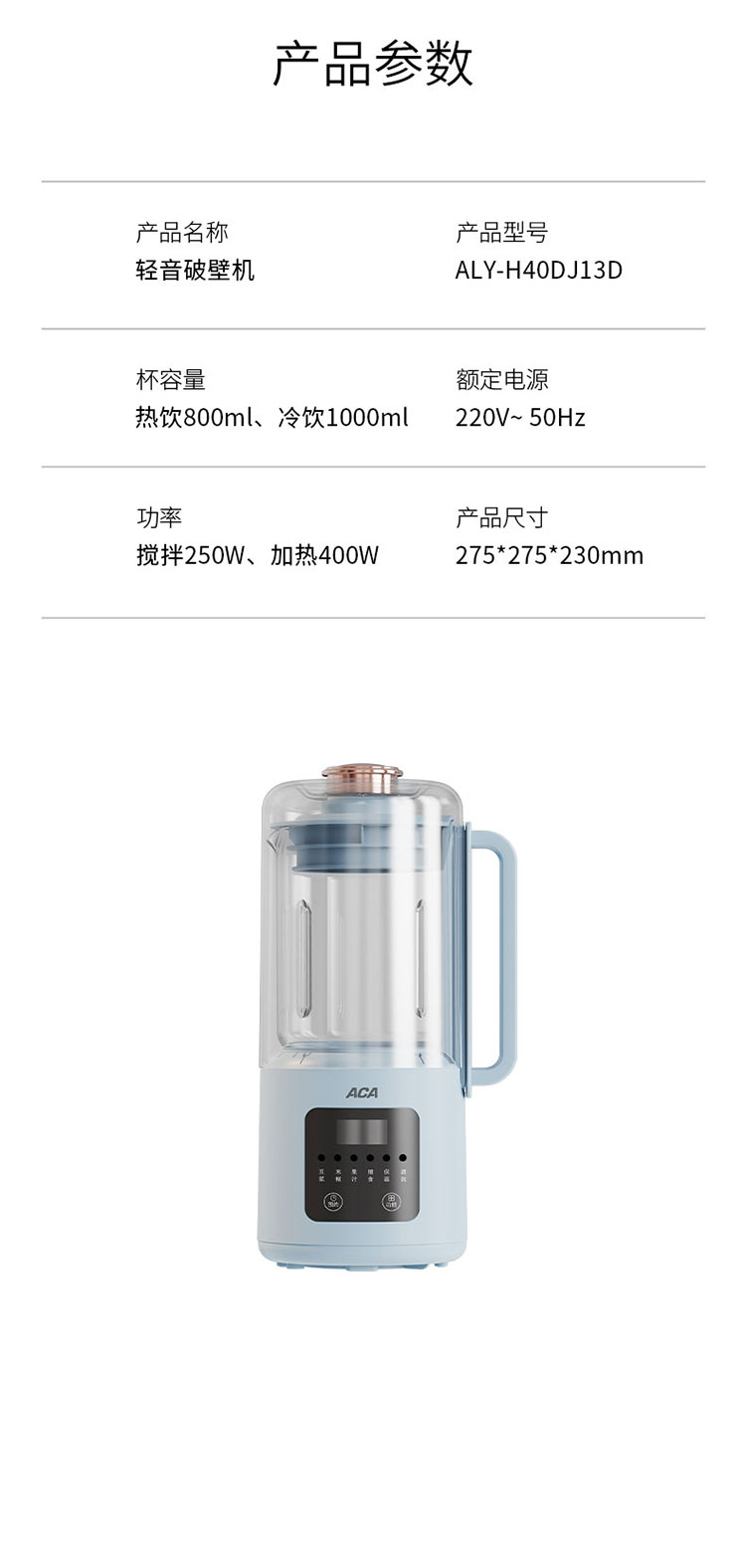 商品名称:【京东/顺丰/德邦配送】ACA/北美电器1升轻音破壁机ALY-H40DJ13D