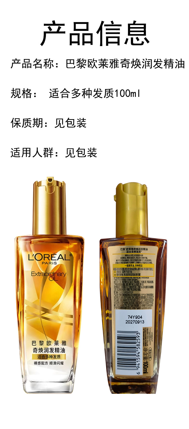 商品名称:L'OREAL/欧莱雅奇焕润发精油组合小金瓶100ml+小红瓶100ml 新旧包装随机不接受指定