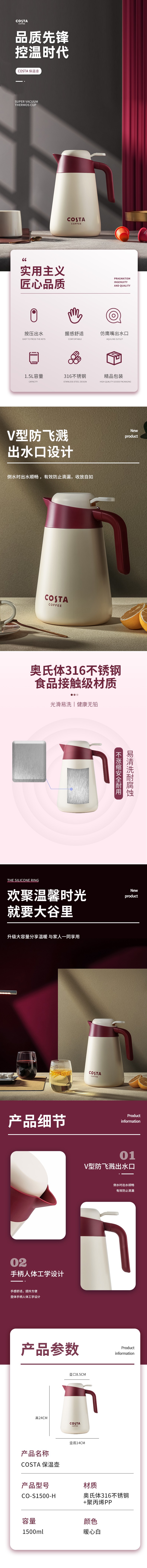 商品名称:COSTA 1.5升保温壶-暖心白CO-S1500-H