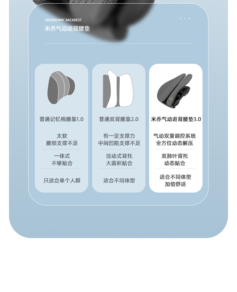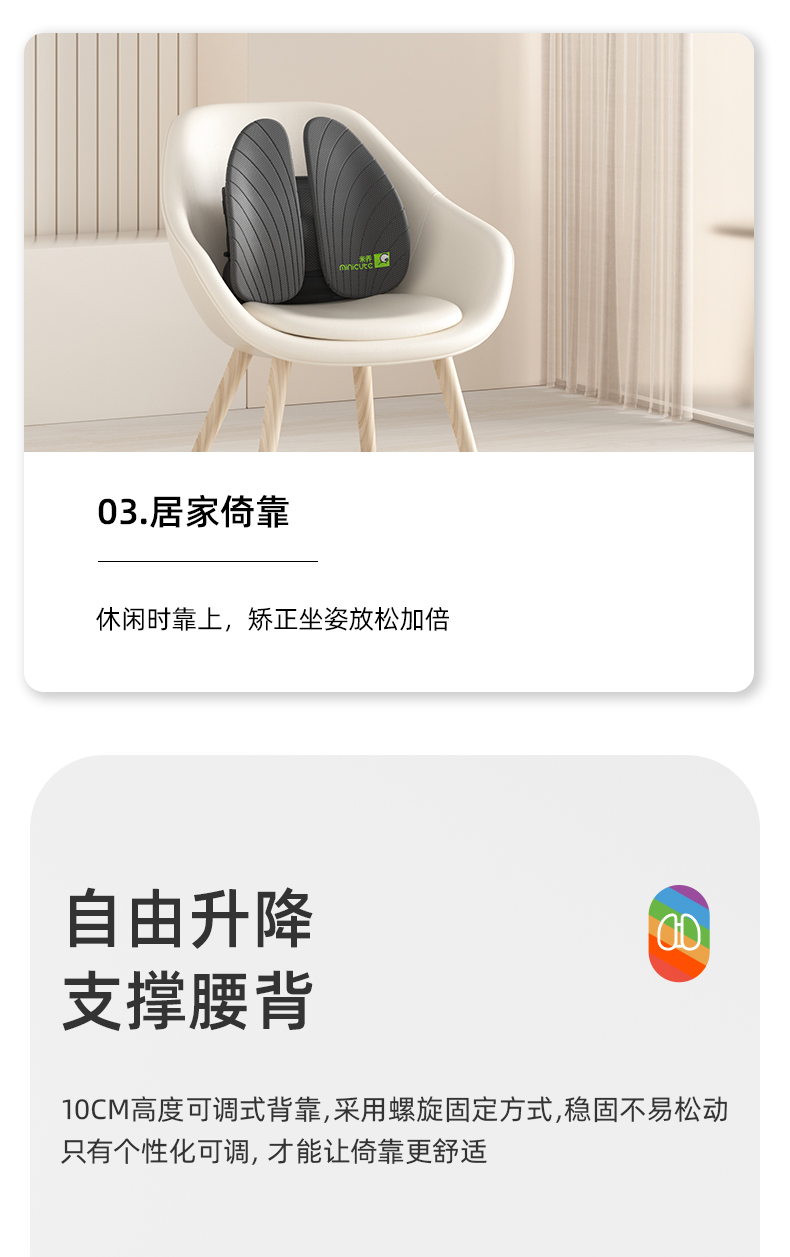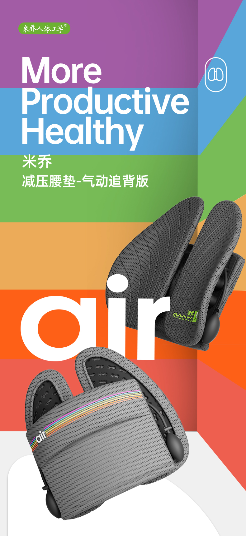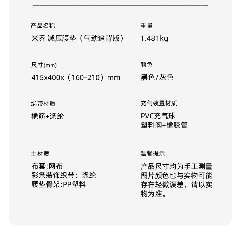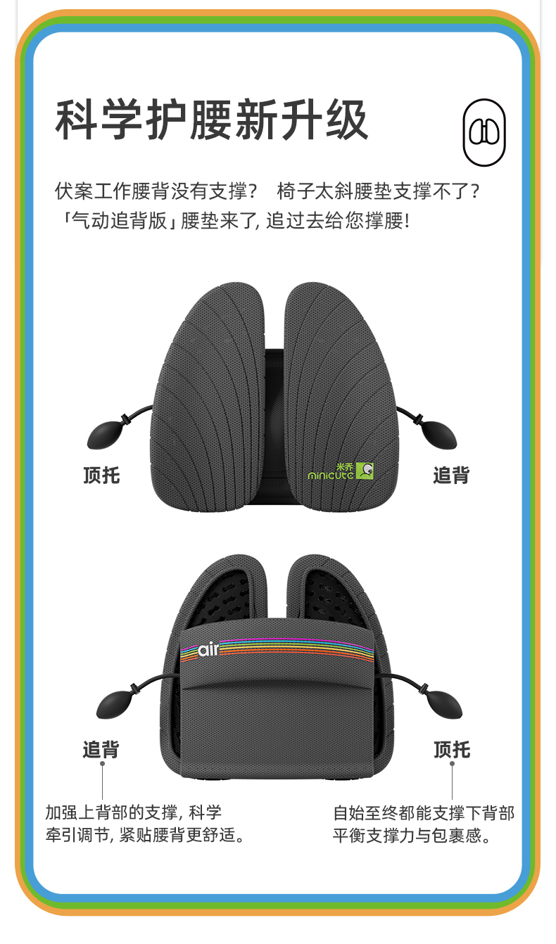 商品名称:minicute/米乔气动追背版双气囊减压腰垫