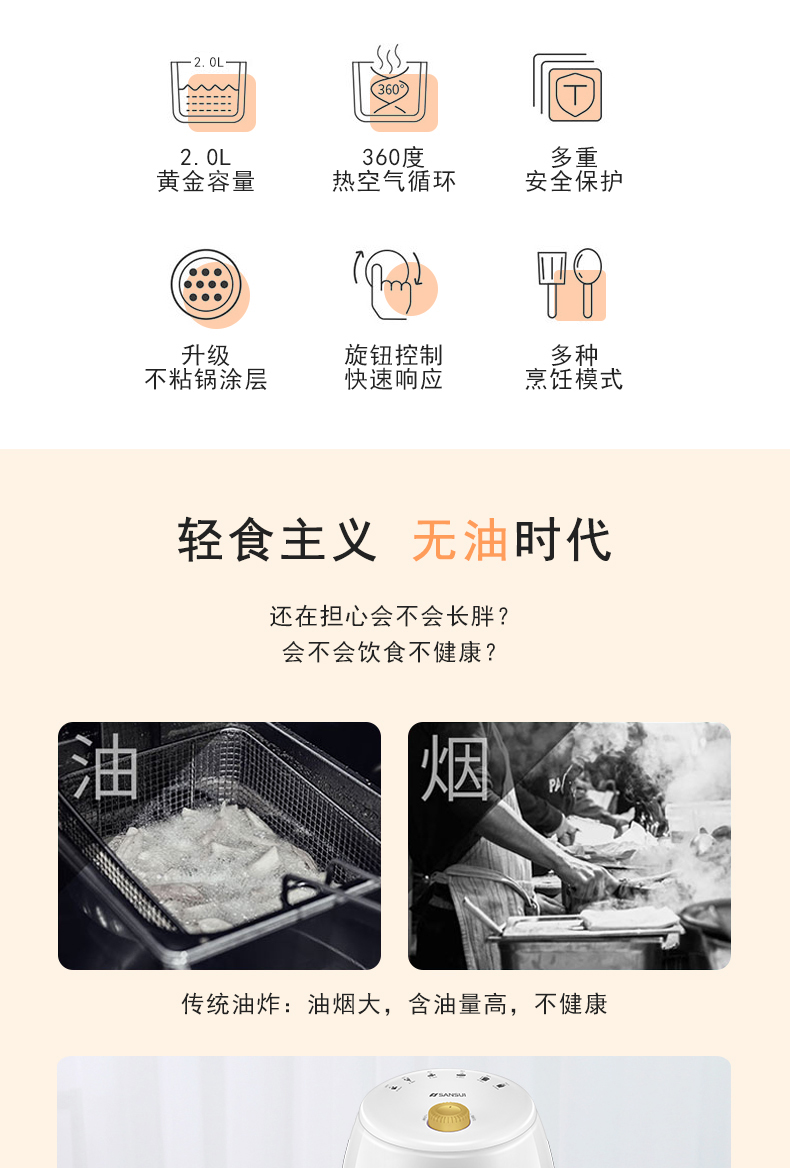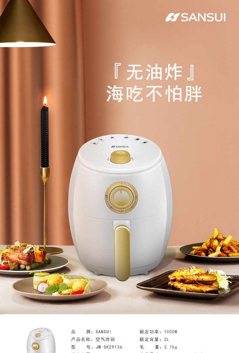商品名称:SANSUI/山水2升空气炸锅JM-SKZ9136