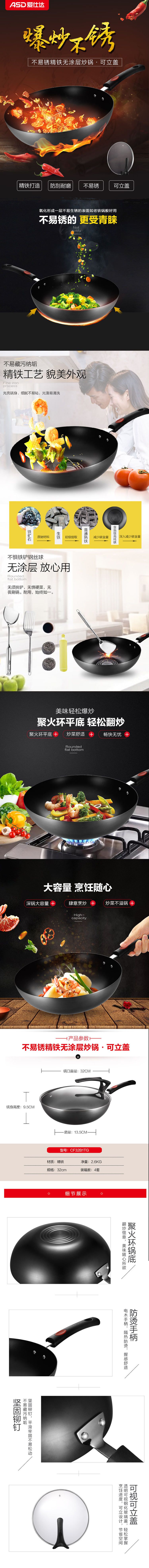 商品名称:【京东配送】ASD/爱仕达32cm不易锈精铁无涂层可立盖炒锅CF32B1TG