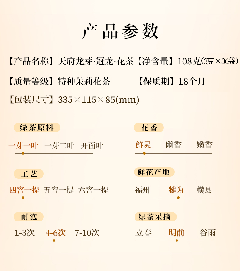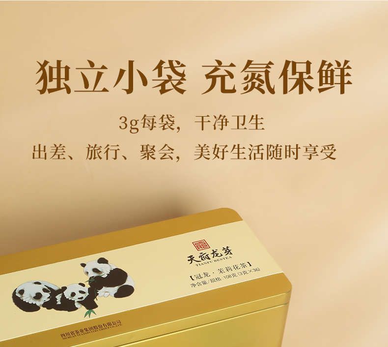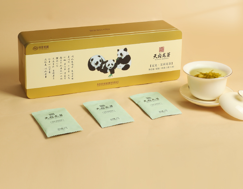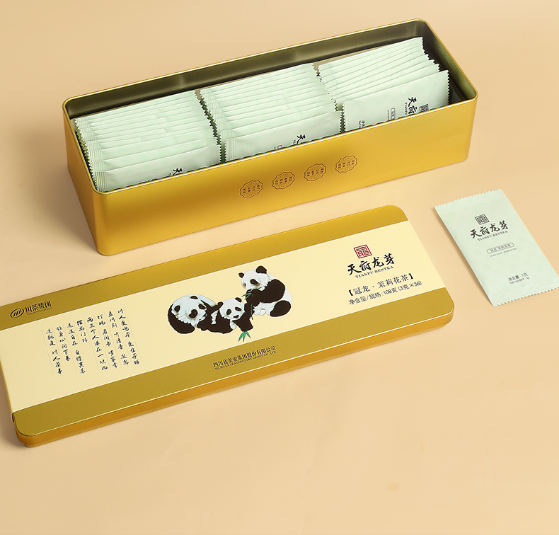 商品名称:天府龙芽熊猫款冠龙系列特种茉莉花茶礼盒装108g